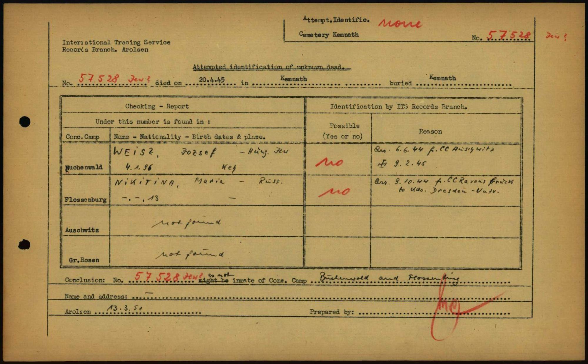 Einen Kommentar schreiben →Attempted Identification of Unknown Dead - Cemeteries: Ergebnisse der Identifizierung... 0005 (84615285)