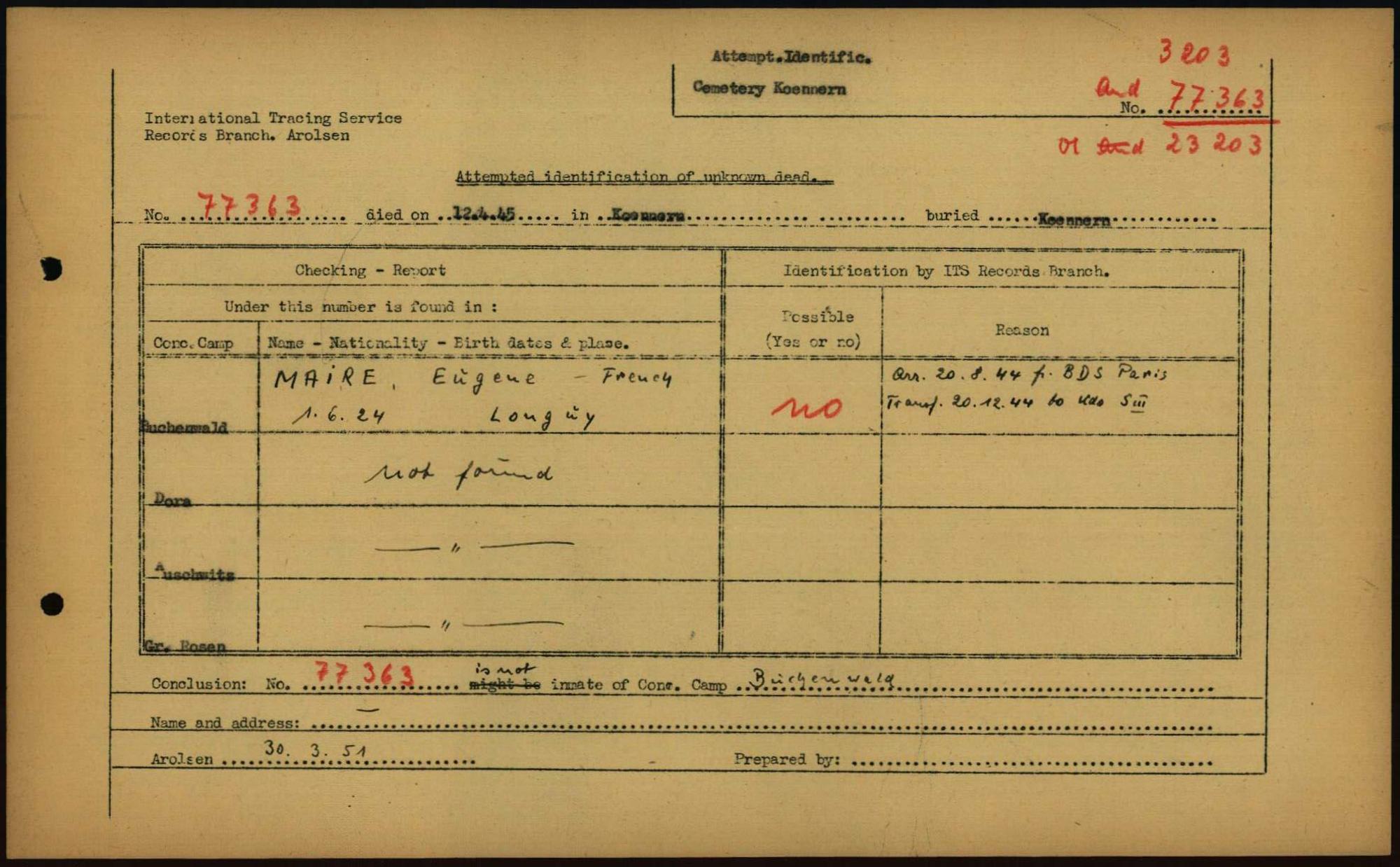 Einen Kommentar schreiben →Attempted Identification of Unknown Dead - Cemeteries: Ergebnisse der Identifizierung... 0007 (84615296)