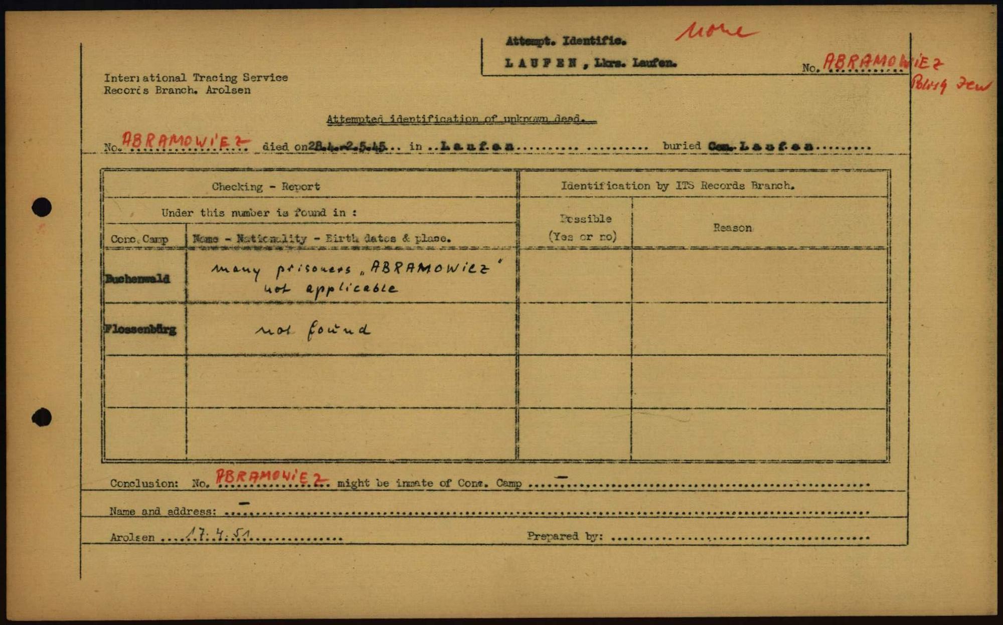 Einen Kommentar schreiben →Attempted Identification of Unknown Dead - Cemeteries: Ergebnisse der Identifizierung... 0006 (84615360)