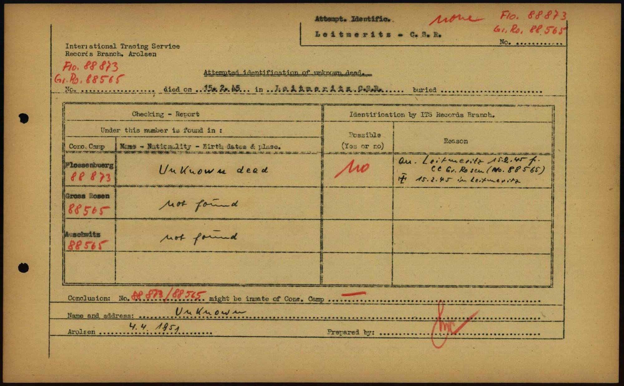 Einen Kommentar schreiben →Attempted Identification of Unknown Dead - Cemeteries: Ergebnisse der Identifizierung... 0021 (84615397)