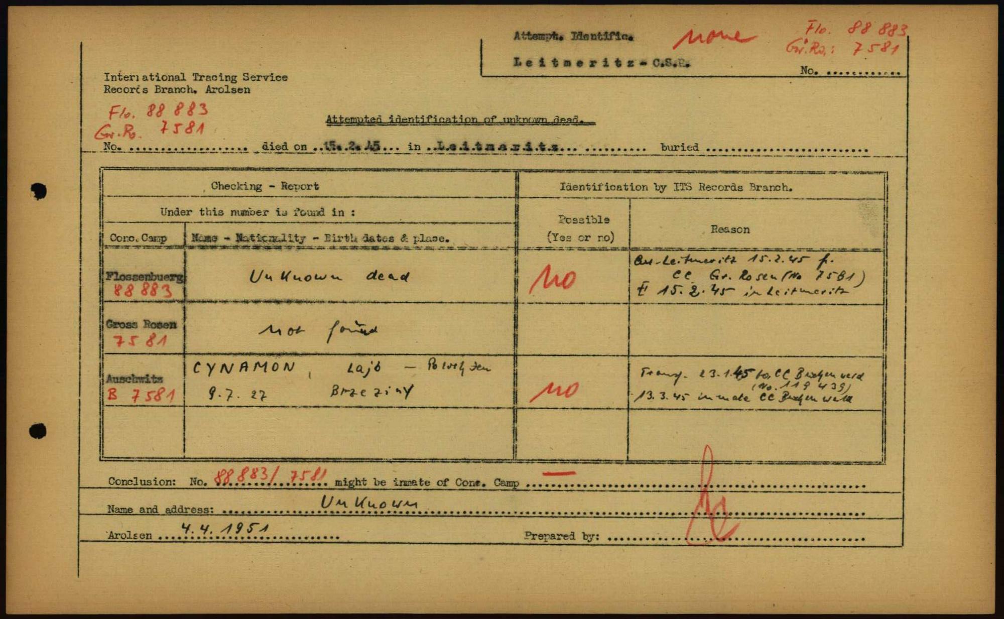 Einen Kommentar schreiben →Attempted Identification of Unknown Dead - Cemeteries: Ergebnisse der Identifizierung... 0031 (84615407)