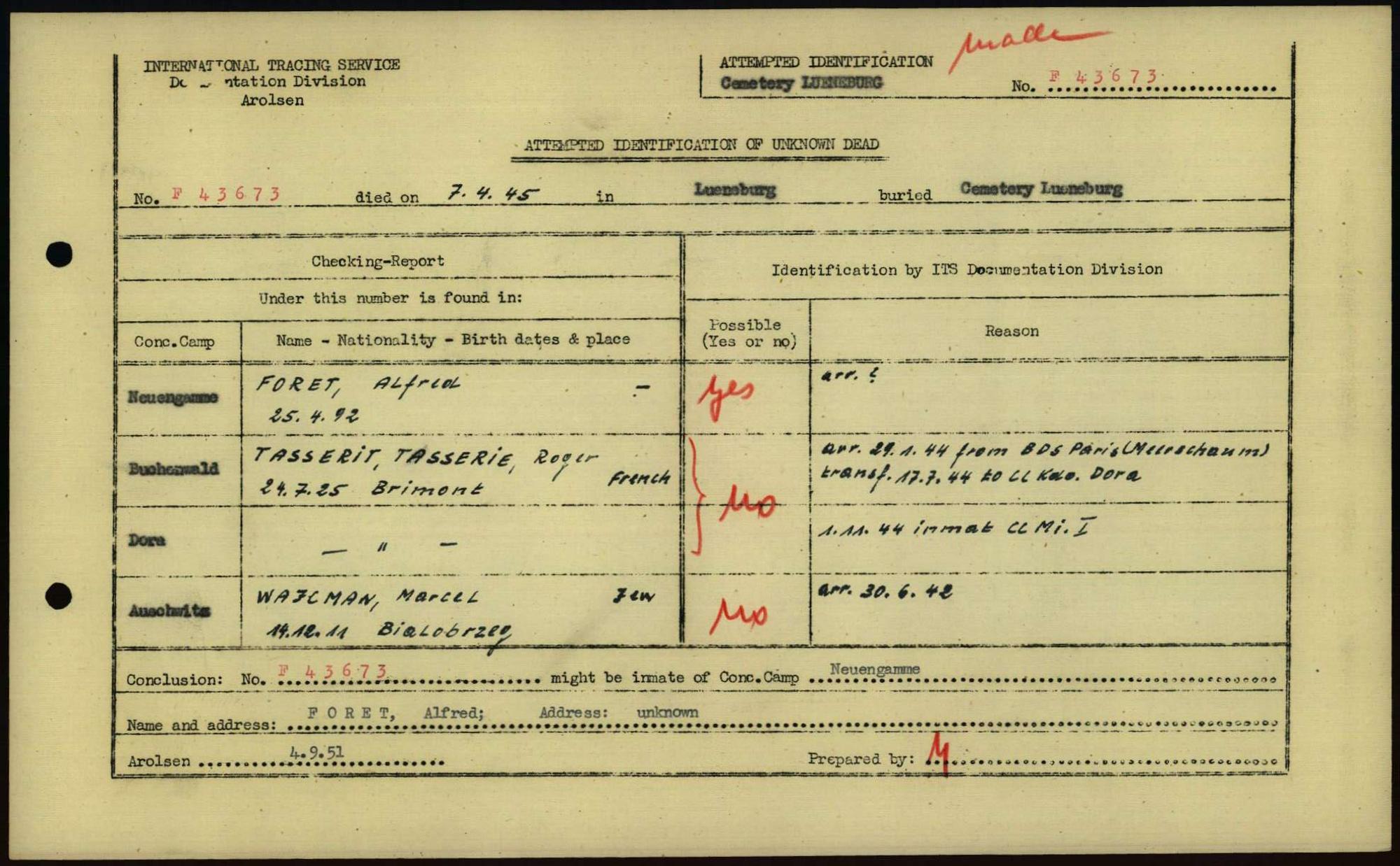 Einen Kommentar schreiben →Attempted Identification of Unknown Dead - Cemeteries: Ergebnisse der Identifizierung... 0070 (84615576)