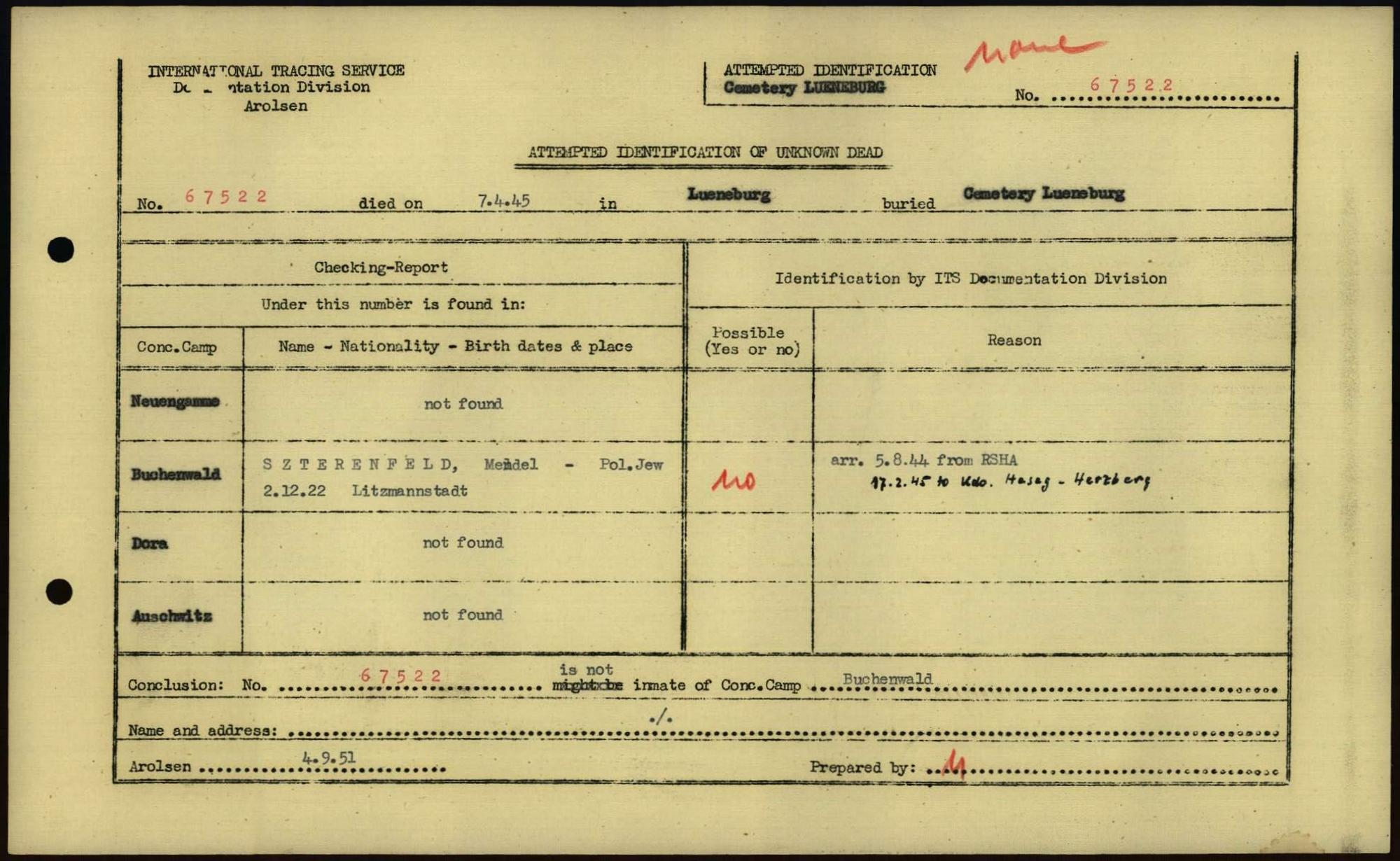 Einen Kommentar schreiben →Attempted Identification of Unknown Dead - Cemeteries: Ergebnisse der Identifizierung... 0194 (84615700)