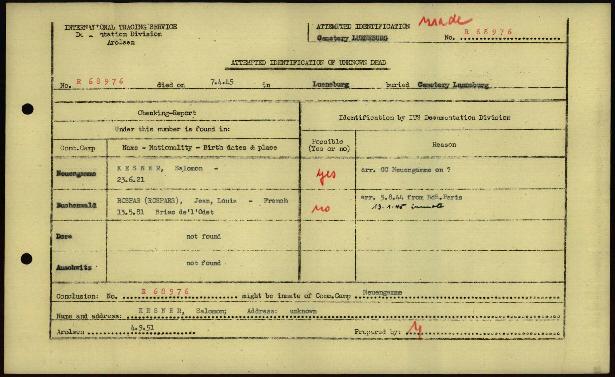 Einen Kommentar schreiben →Attempted Identification of Unknown Dead - Cemeteries: Ergebnisse der Identifizierung... 0203 (84615709)