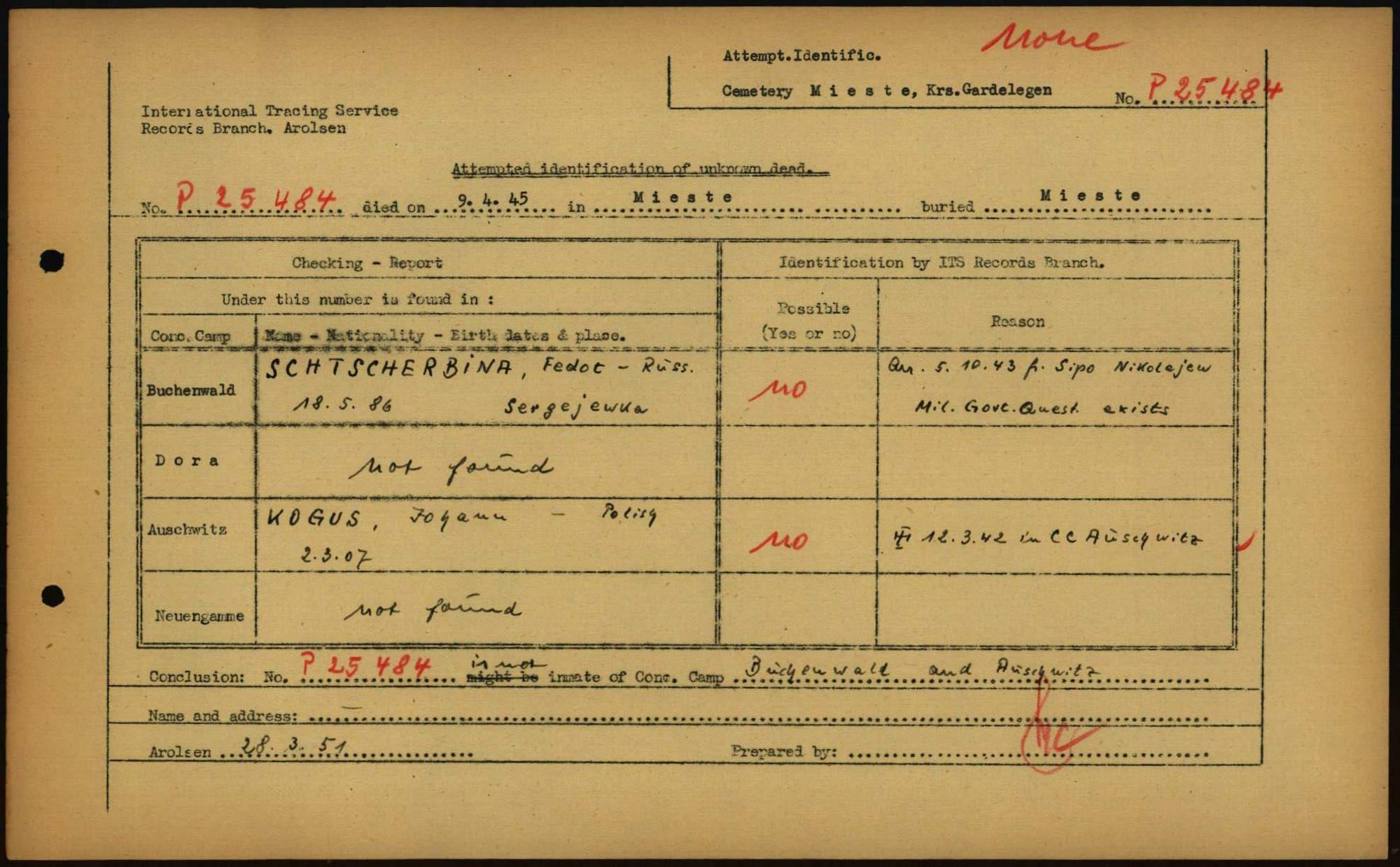 Einen Kommentar schreiben →Attempted Identification of Unknown Dead - Cemeteries: Ergebnisse der Identifizierung... 0013 (84615758)