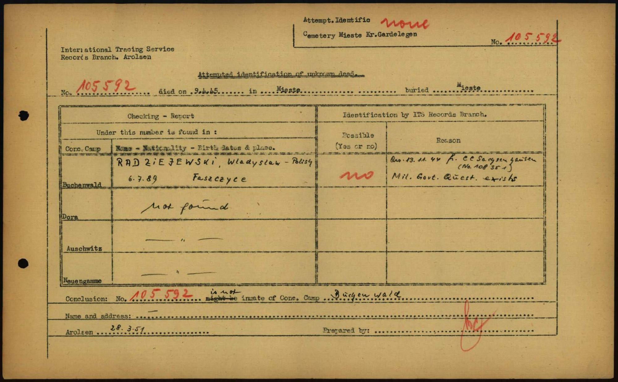 Einen Kommentar schreiben →Attempted Identification of Unknown Dead - Cemeteries: Ergebnisse der Identifizierung... 0038 (84615783)