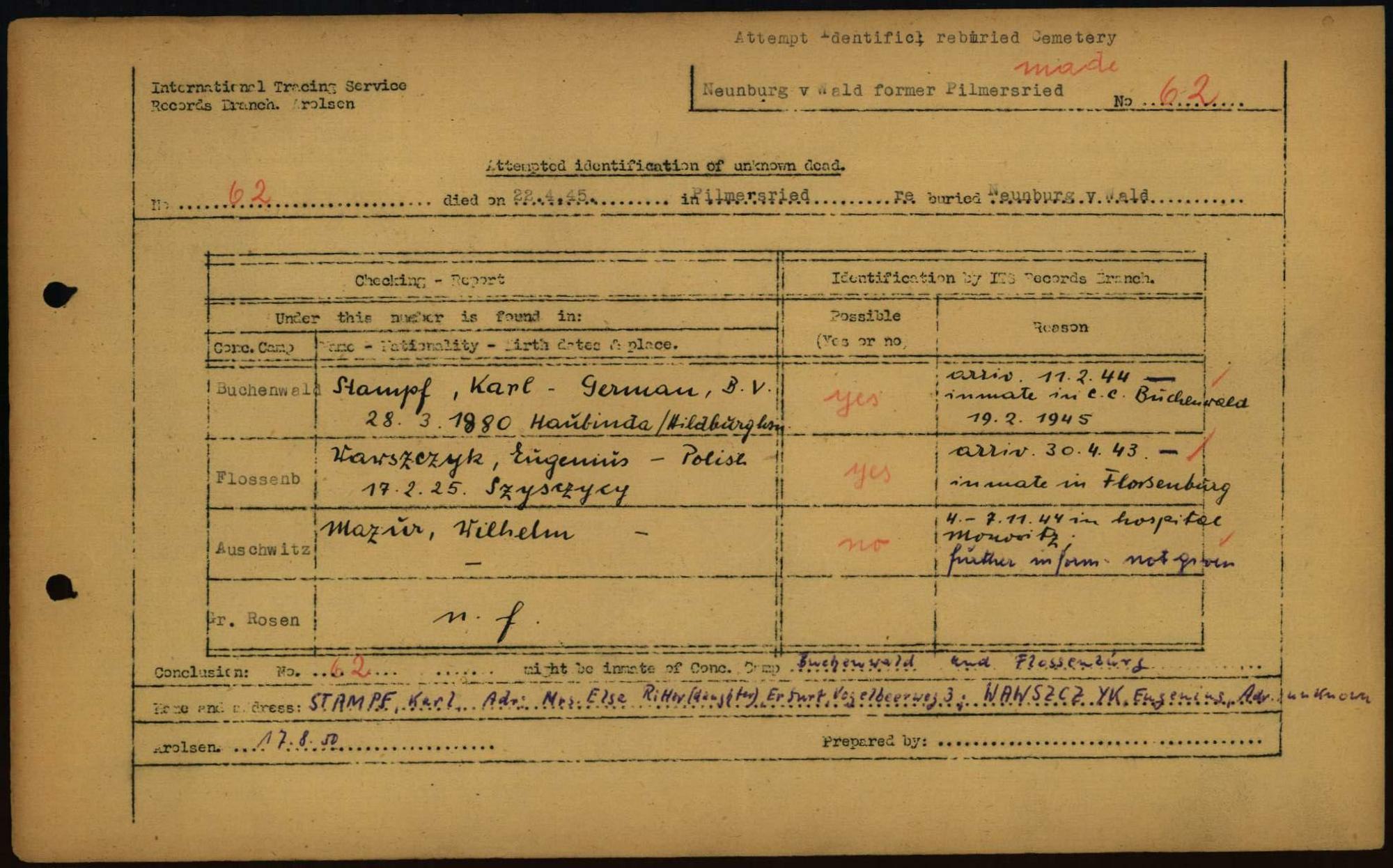 Einen Kommentar schreiben →Attempted Identification of Unknown Dead - Cemeteries: Ergebnisse der Identifizierung... 0026 (84615947)