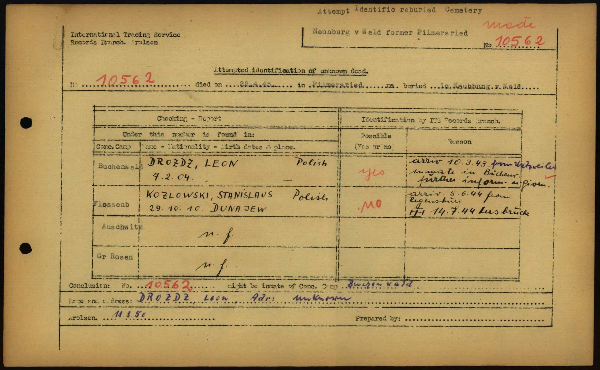 Einen Kommentar schreiben →Attempted Identification of Unknown Dead - Cemeteries: Ergebnisse der Identifizierung... 0072 (84615993)