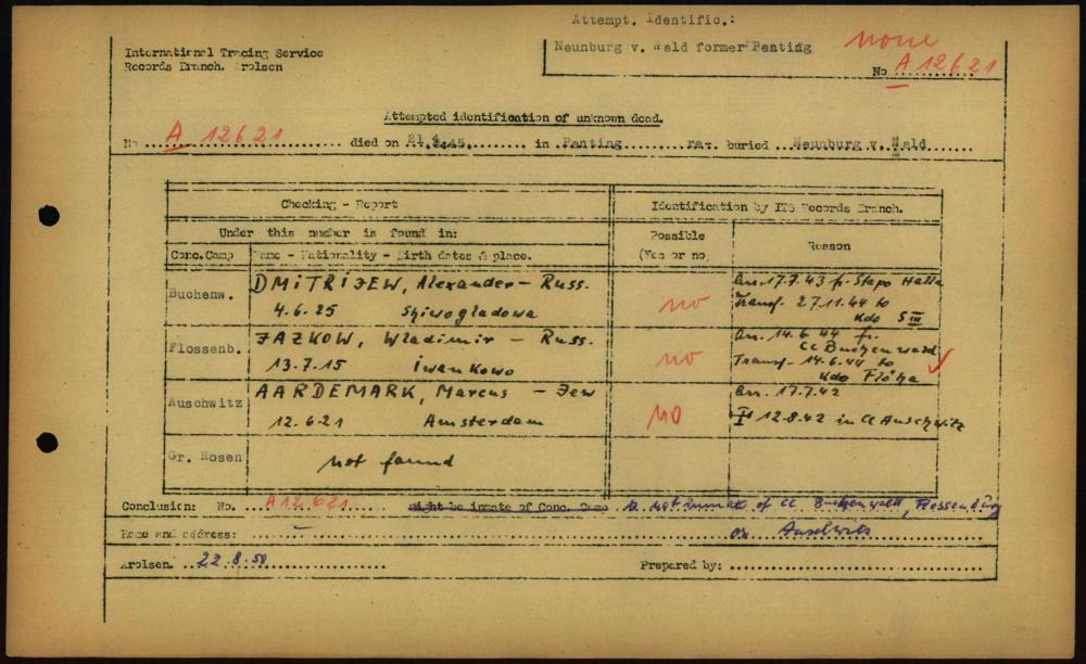 Einen Kommentar schreiben →Attempted Identification of Unknown Dead - Cemeteries: Ergebnisse der Identifizierung... 0077 (84615998)