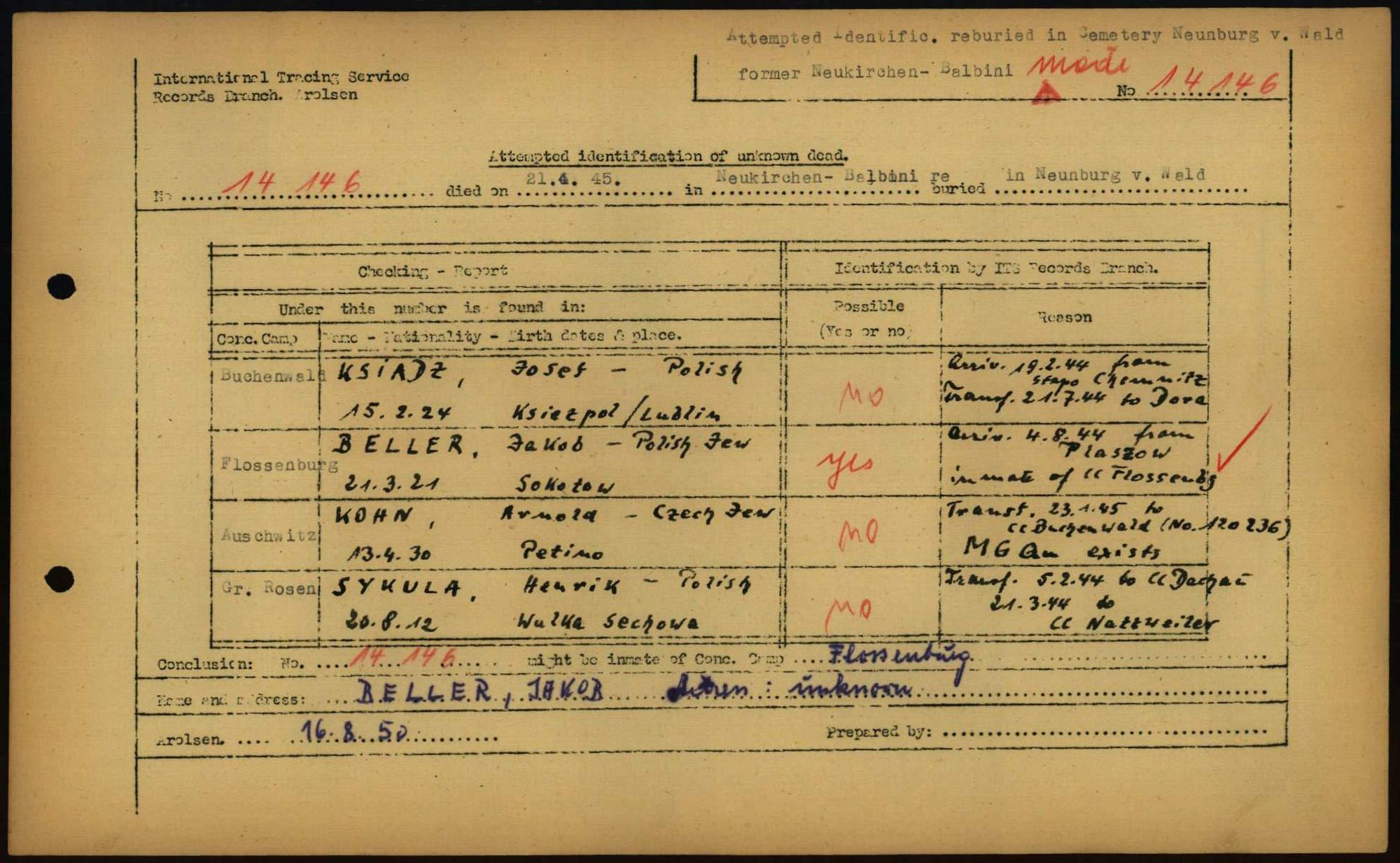 Einen Kommentar schreiben →Attempted Identification of Unknown Dead - Cemeteries: Ergebnisse der Identifizierung... 0080 (84616001)
