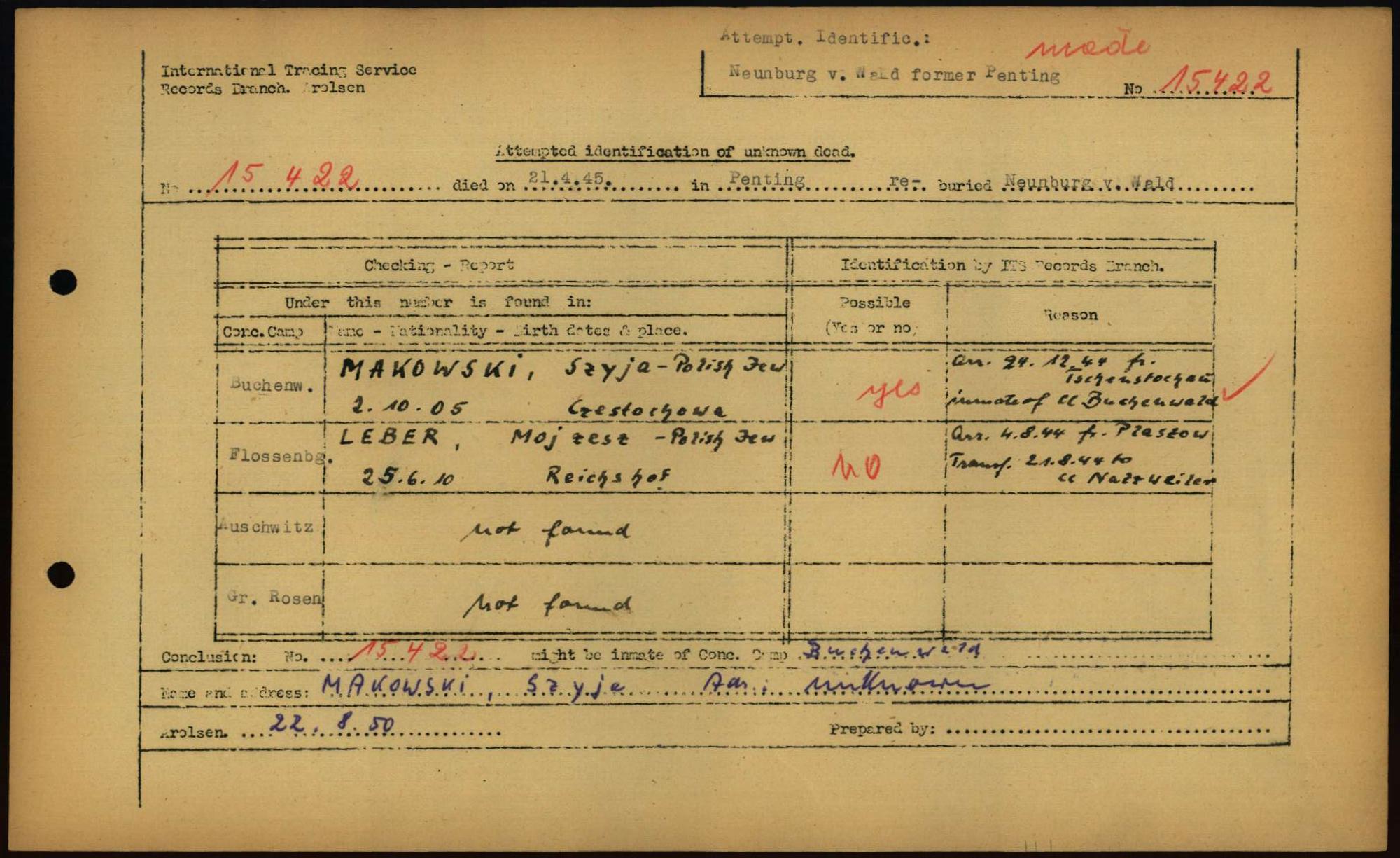 Einen Kommentar schreiben →Attempted Identification of Unknown Dead - Cemeteries: Ergebnisse der Identifizierung... 0093 (84616014)