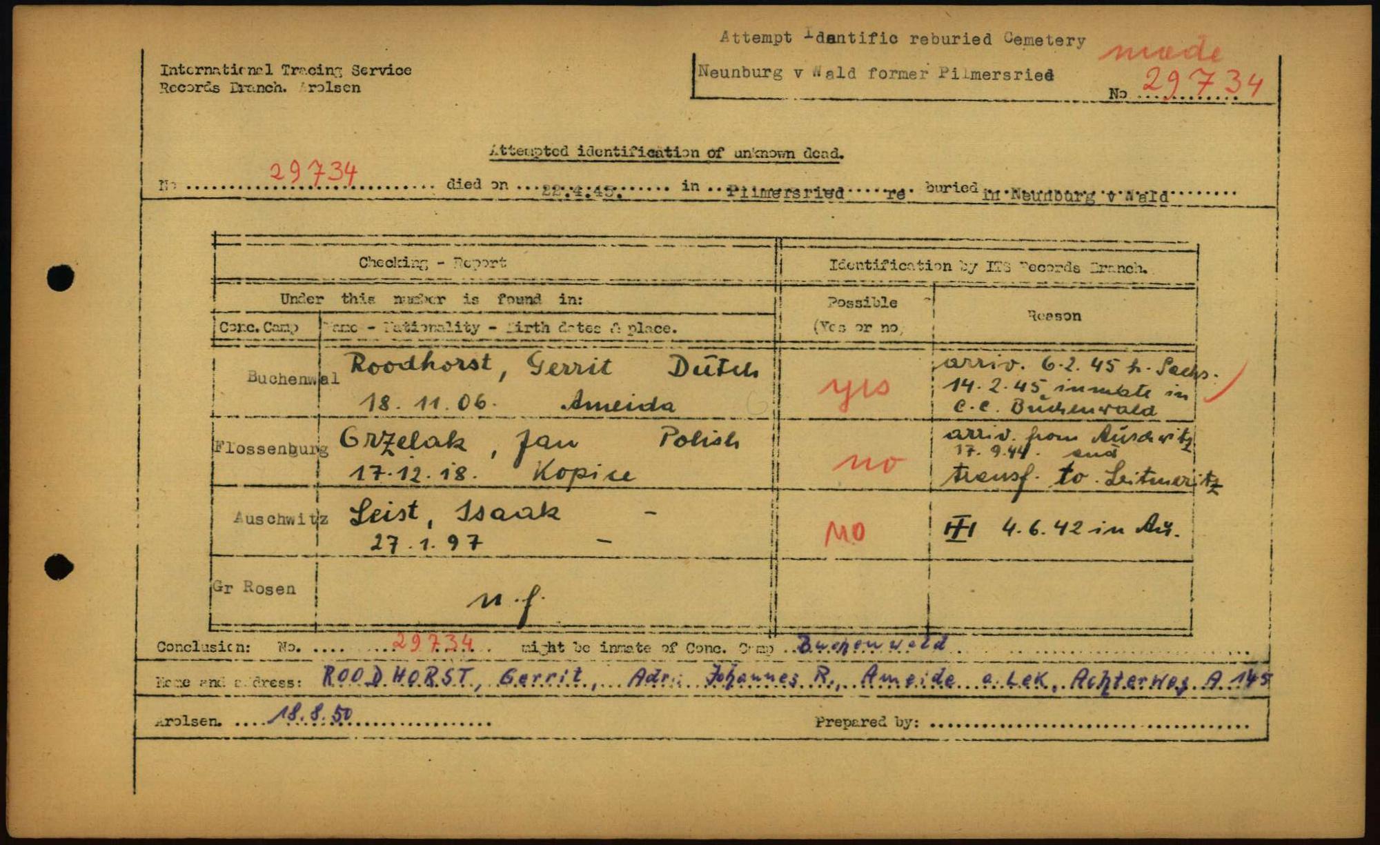Einen Kommentar schreiben →Attempted Identification of Unknown Dead - Cemeteries: Ergebnisse der Identifizierung... 0115 (84616036)