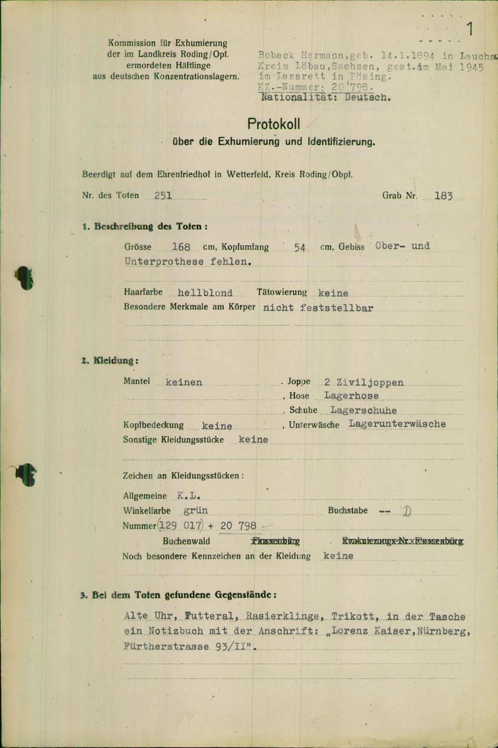 Einen Kommentar schreiben →Exhumierung und Identifizierung der auf dem Todesmarsch vom Konzentrationslager Flossenbürg... 0001 (84622250)