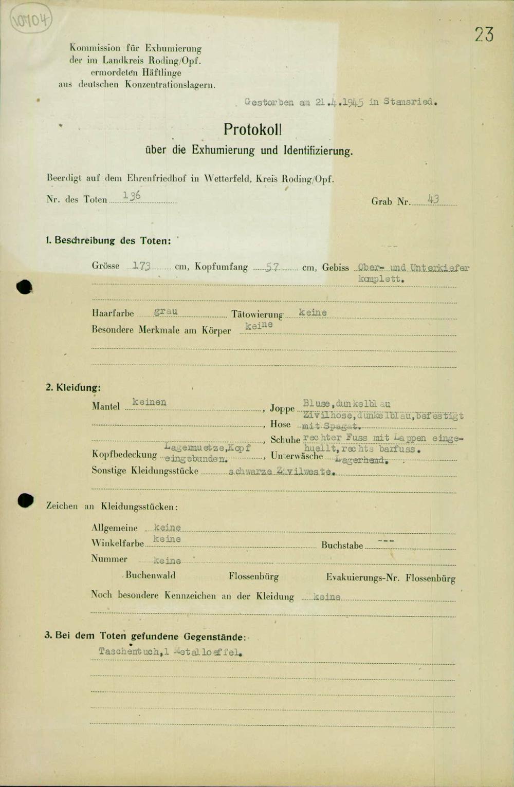 Einen Kommentar schreiben →Exhumierung und Identifizierung der auf dem Todesmarsch vom Konzentrationslager Flossenbürg... 0023 (84620346)