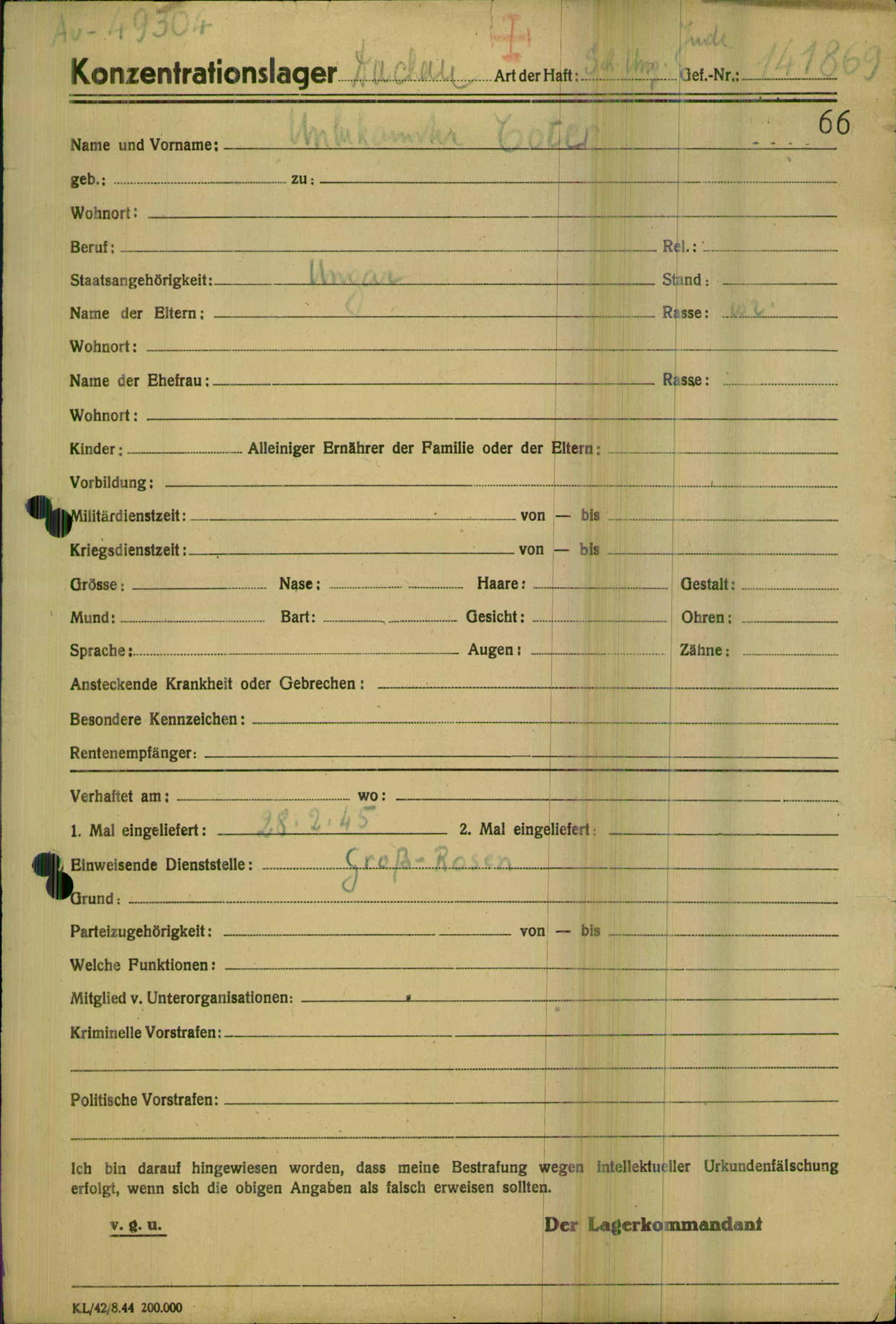 Einen Kommentar schreiben →Einlieferung auf dem Transport verstorbener oder vernehmungsunfähiger Häftlinge in... 0066 (84625084)