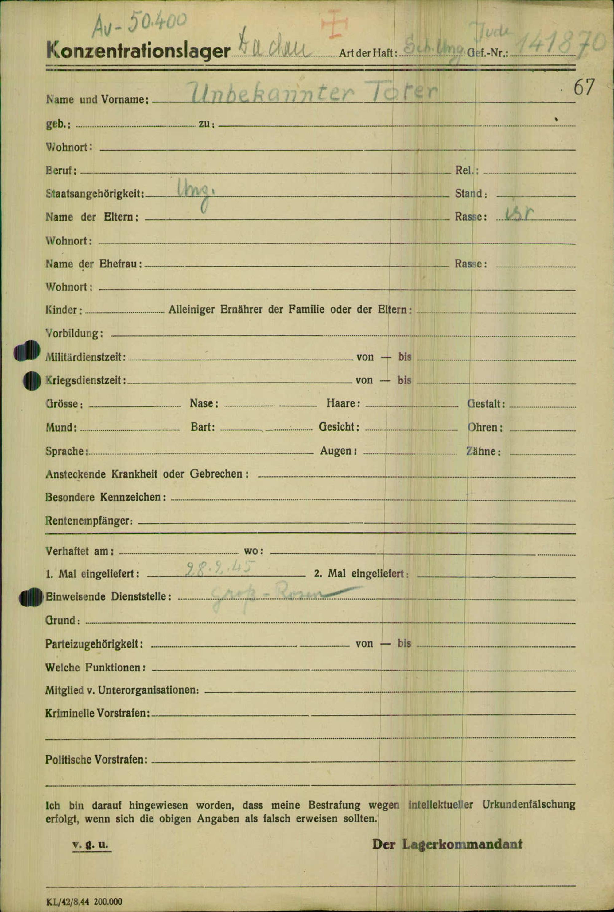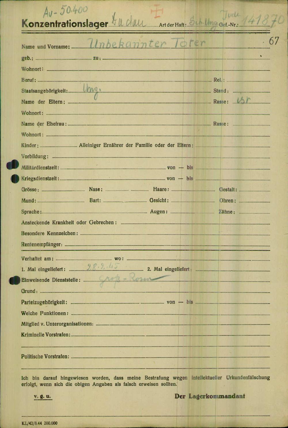 Einen Kommentar schreiben →Einlieferung auf dem Transport verstorbener oder vernehmungsunfähiger Häftlinge in... 0067 (84625085)