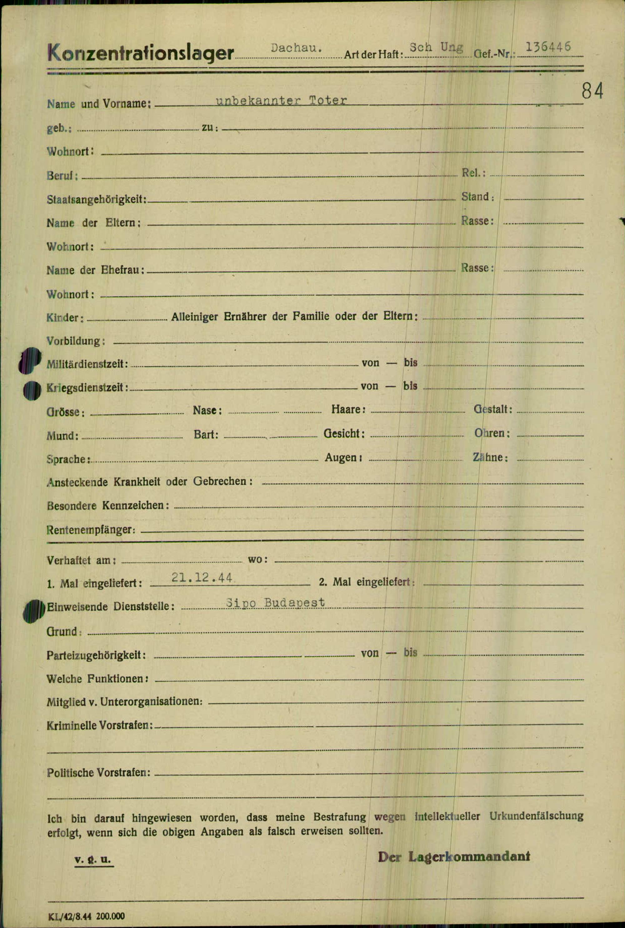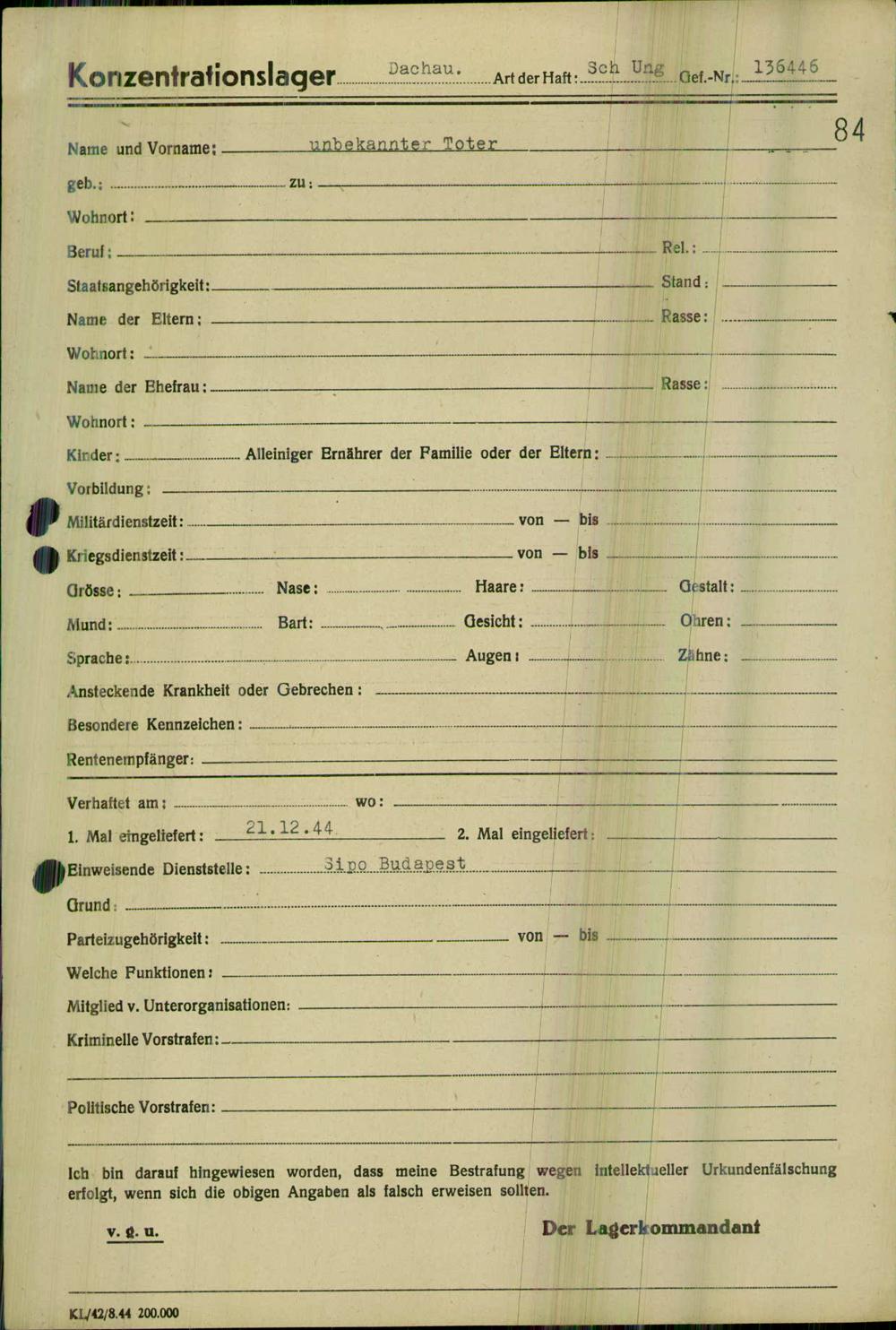 Einen Kommentar schreiben →Einlieferung auf dem Transport verstorbener oder vernehmungsunfähiger Häftlinge in... 0084 (84625102)