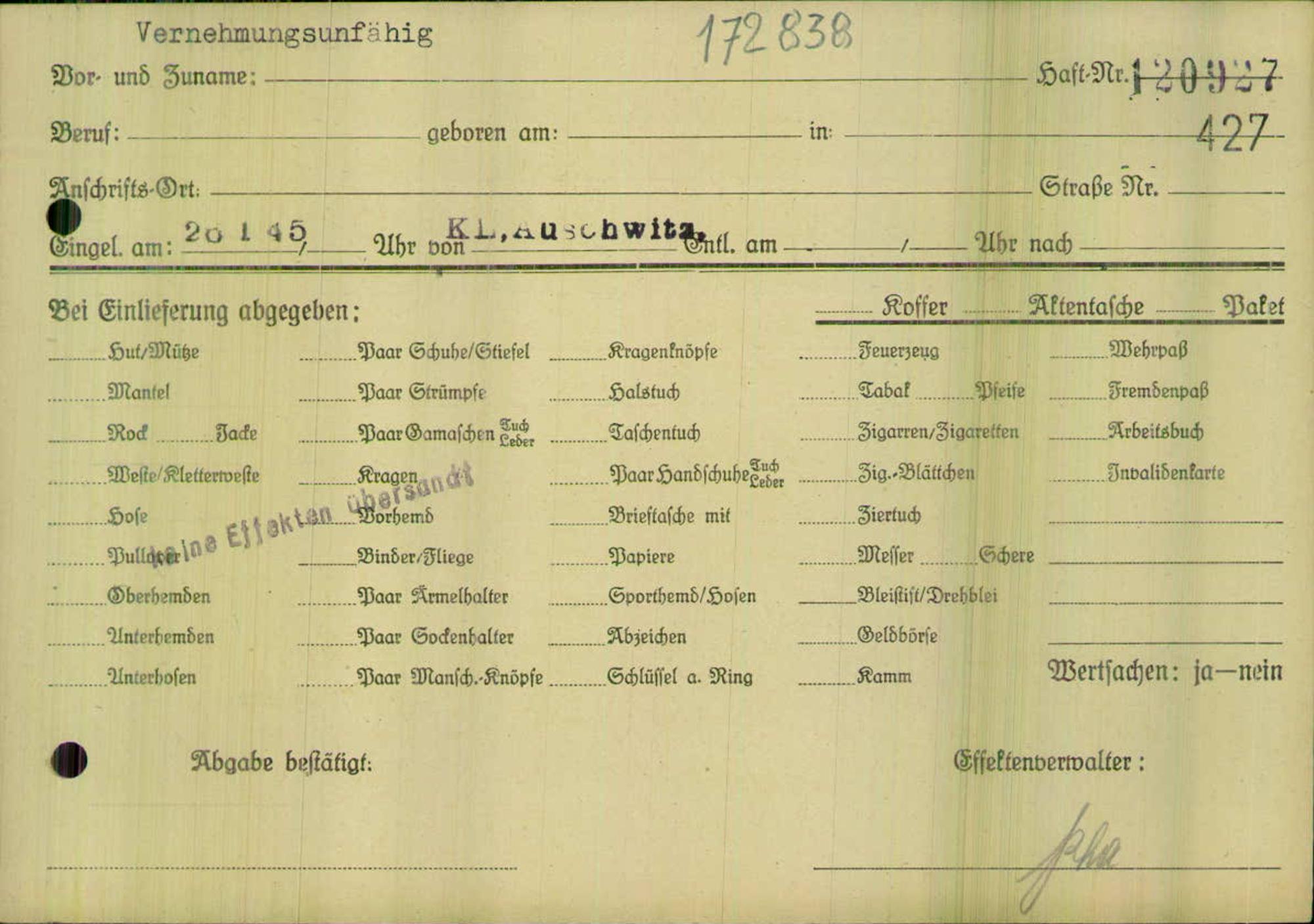 Einen Kommentar schreiben →Einlieferung auf dem Transport verstorbener oder vernehmungsunfähiger Häftlinge in... 0427 (84625447)