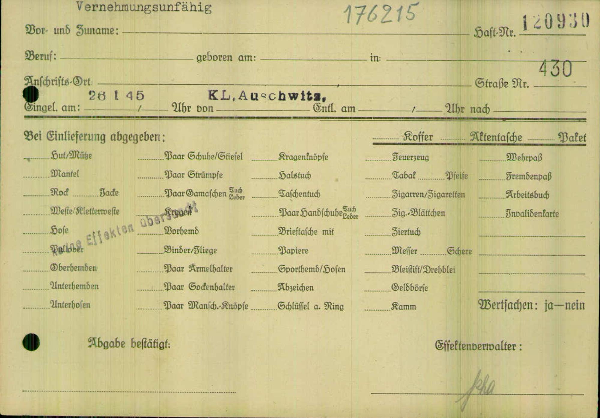 Einen Kommentar schreiben →Einlieferung auf dem Transport verstorbener oder vernehmungsunfähiger Häftlinge in... 0430 (84625450)