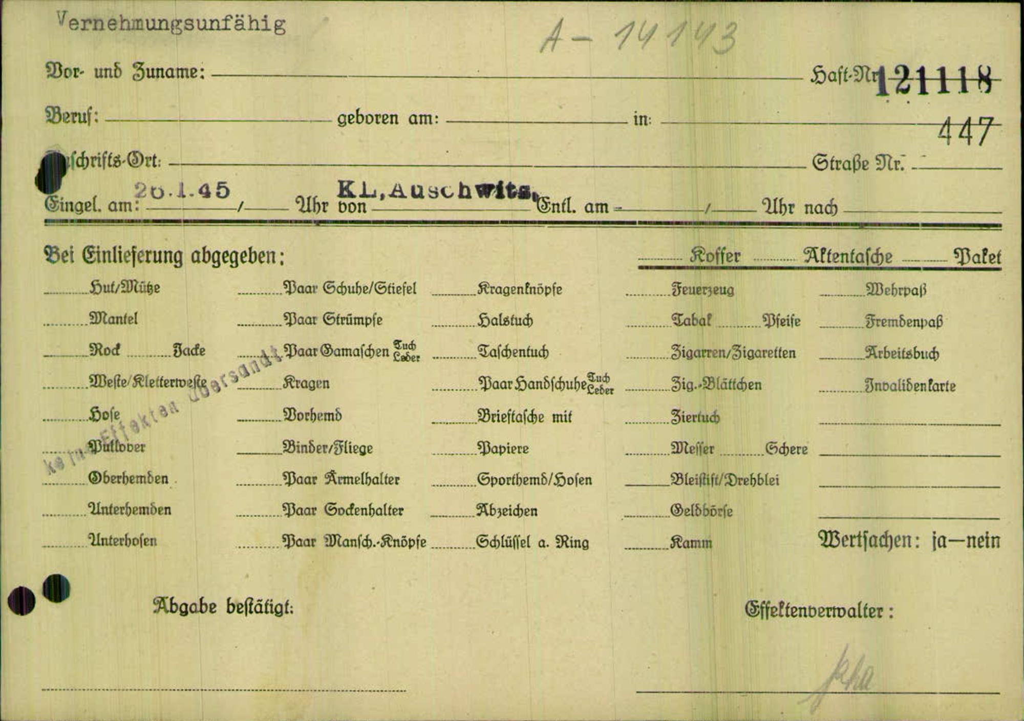 Einen Kommentar schreiben →Einlieferung auf dem Transport verstorbener oder vernehmungsunfähiger Häftlinge in... 0447 (84625467)