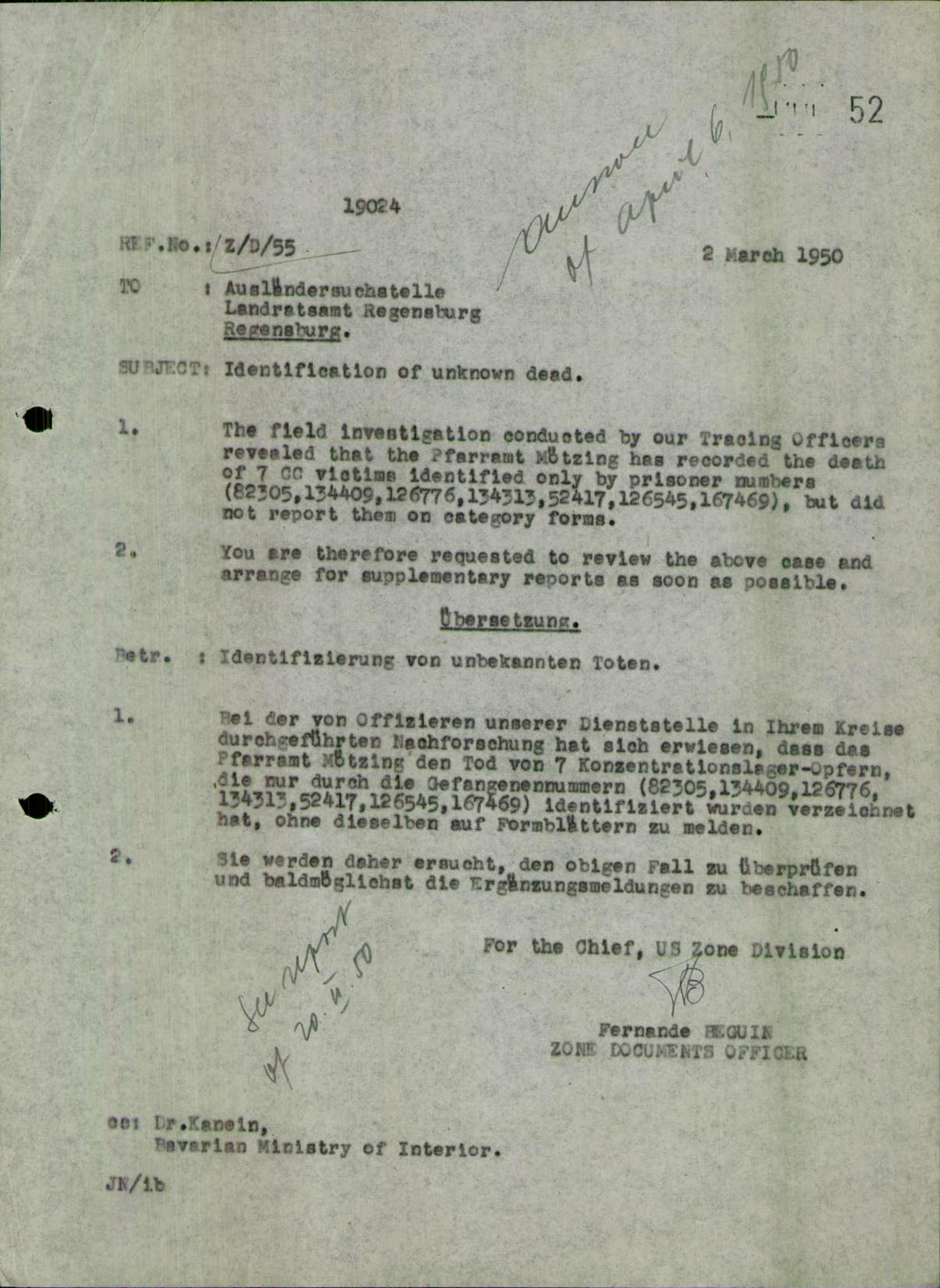 Einen Kommentar schreiben →Ergänzungen der erteilten Auskünfte über unbekannte Tote durch Gemeinden und Landkreise... 0052 (84625599)