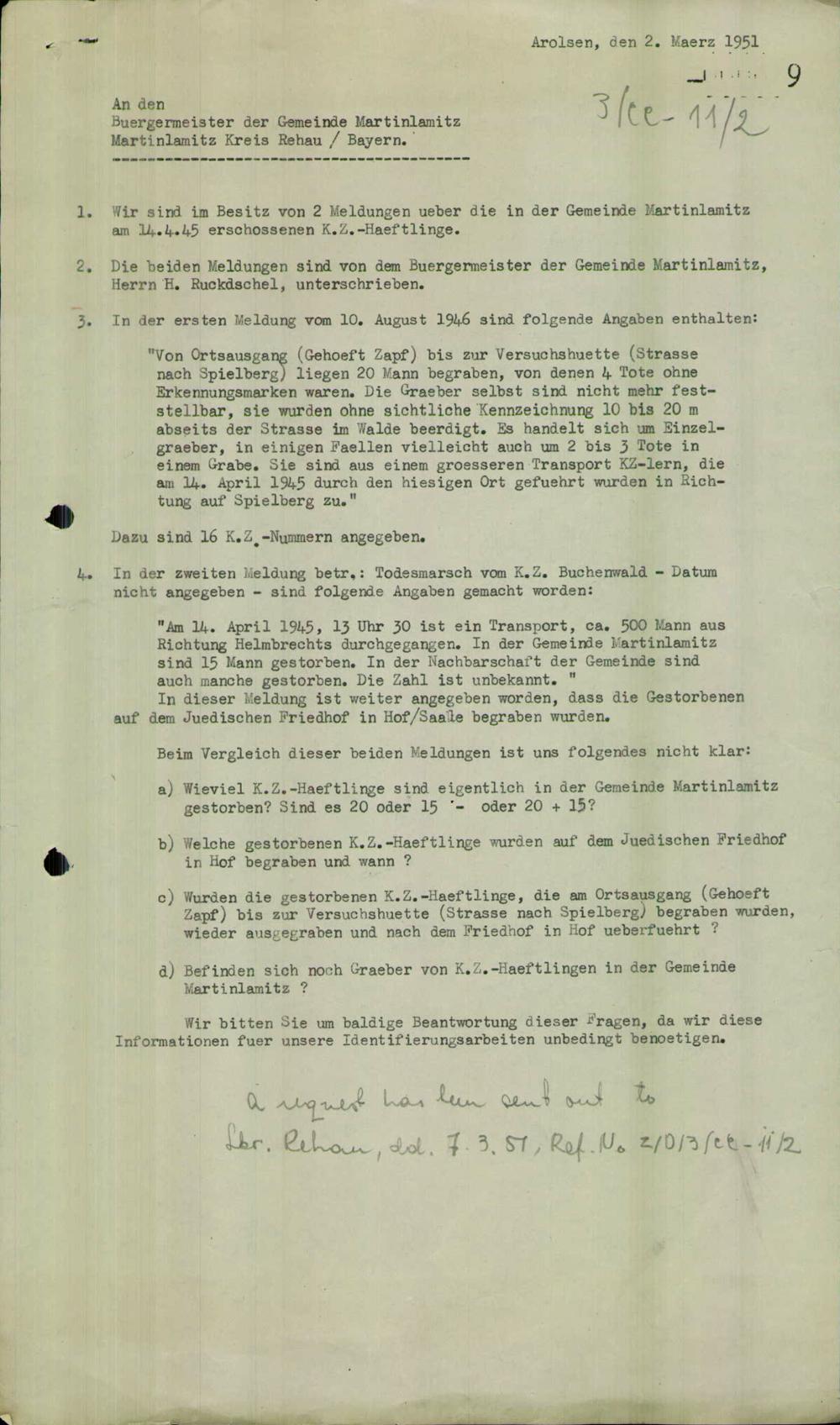Einen Kommentar schreiben →Ergänzungen der erteilten Auskünfte über unbekannte Tote durch Gemeinden und Landkreise... 0009 (84625688)