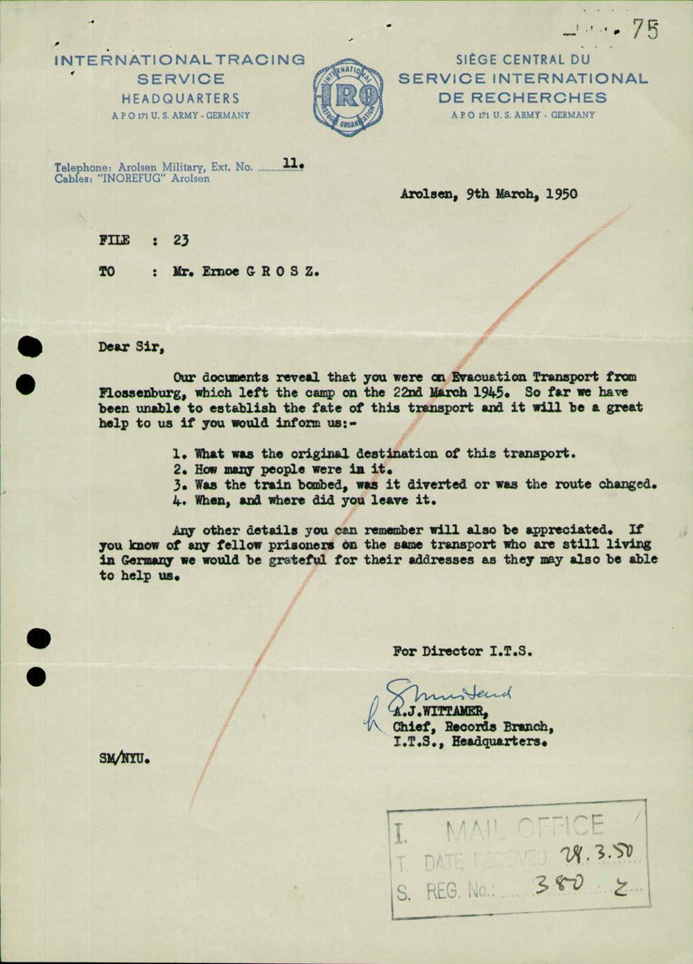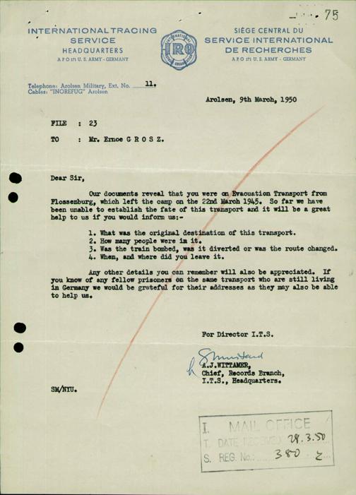 Einen Kommentar schreiben →Anfragen an den ITS und Nachforschungen bezüglich Todesmärschen 0075 (84625821)