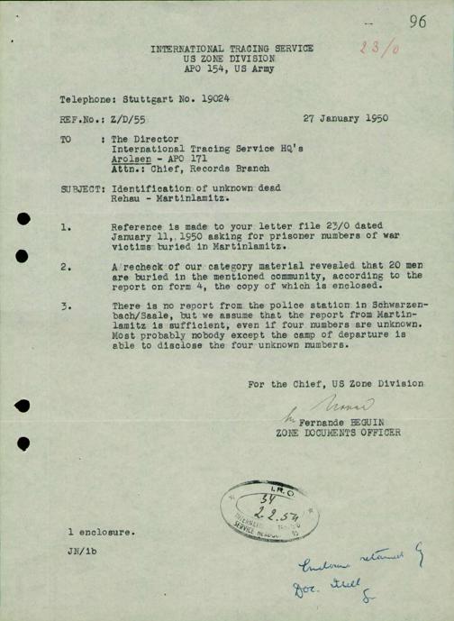Einen Kommentar schreiben →Anfragen an den ITS und Nachforschungen bezüglich Todesmärschen 0096 (84625842)