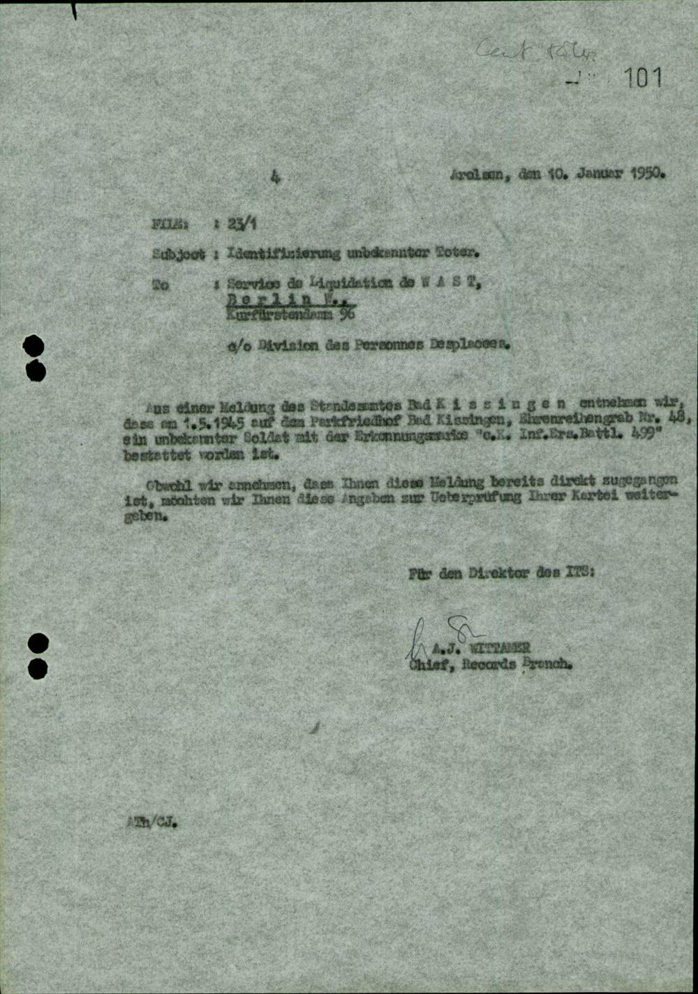 Einen Kommentar schreiben →Anfragen an den ITS und Nachforschungen bezüglich Todesmärschen 0101 (84625847)