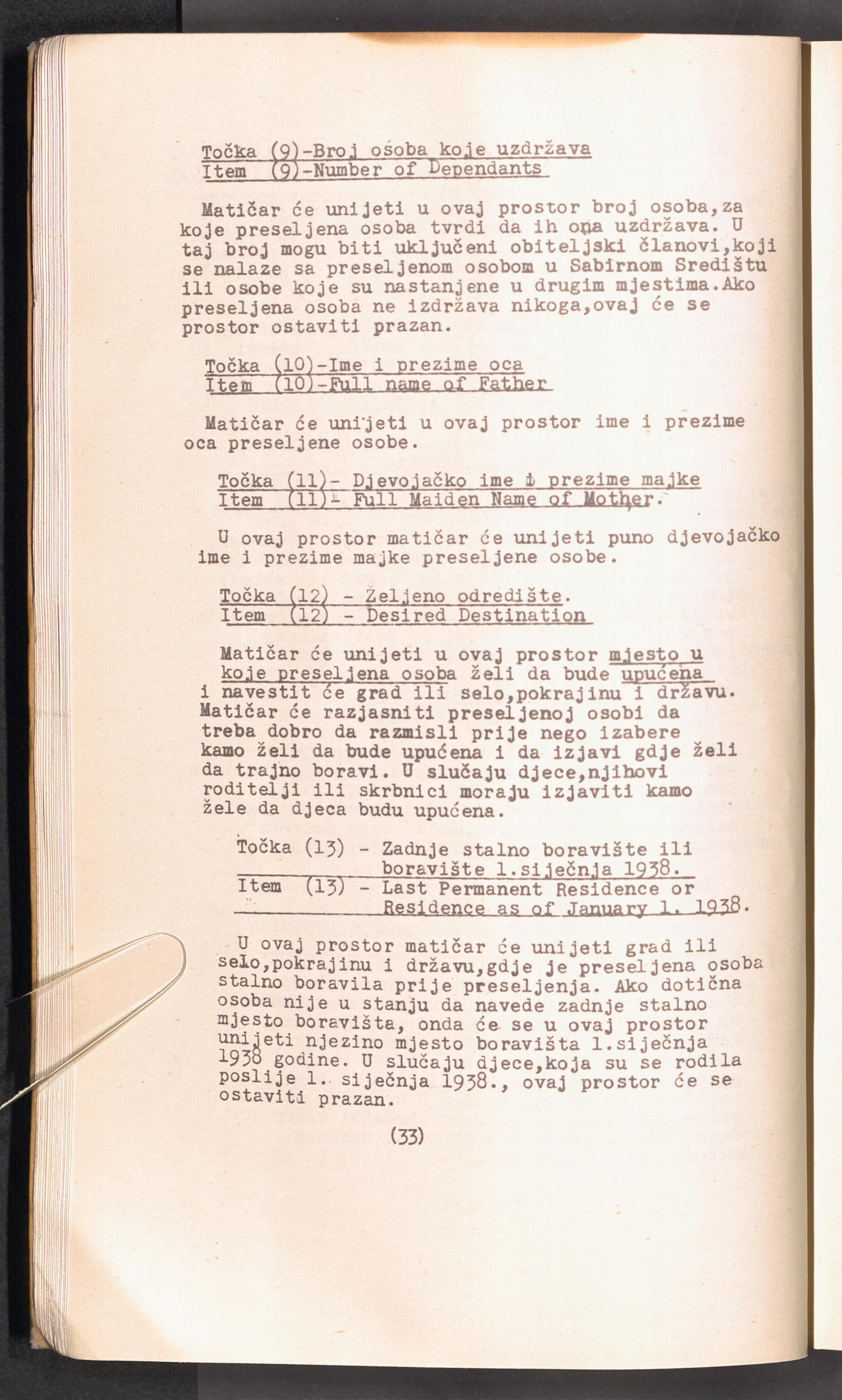 Displaced Persons - Registration Instructions Chapter III (Croat)