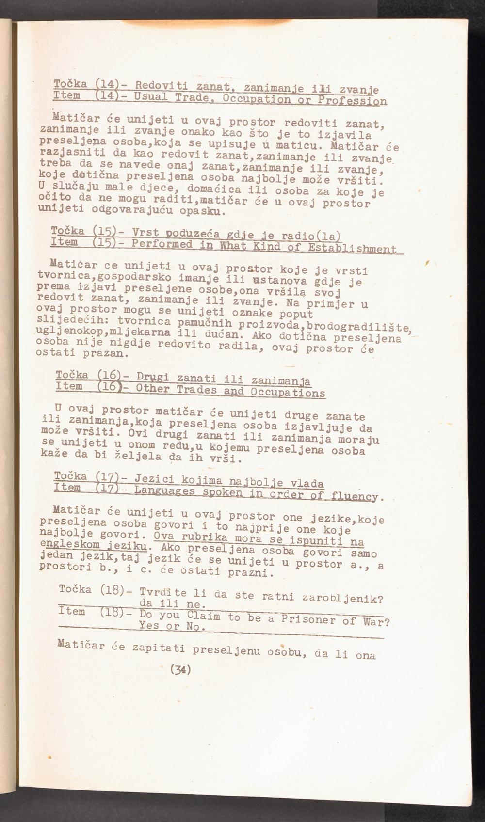 Displaced Persons - Registration Instructions Chapter III (Croat)