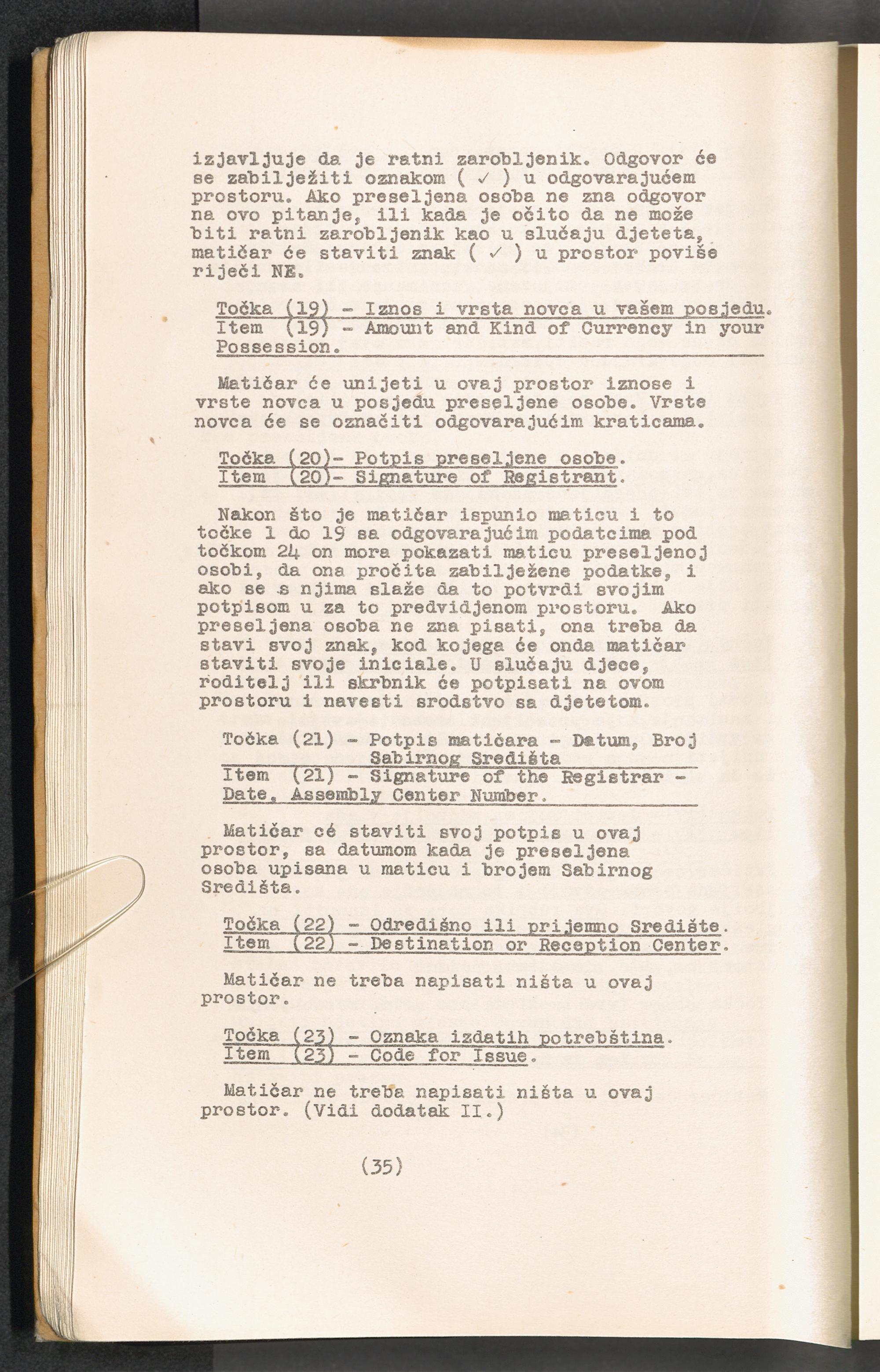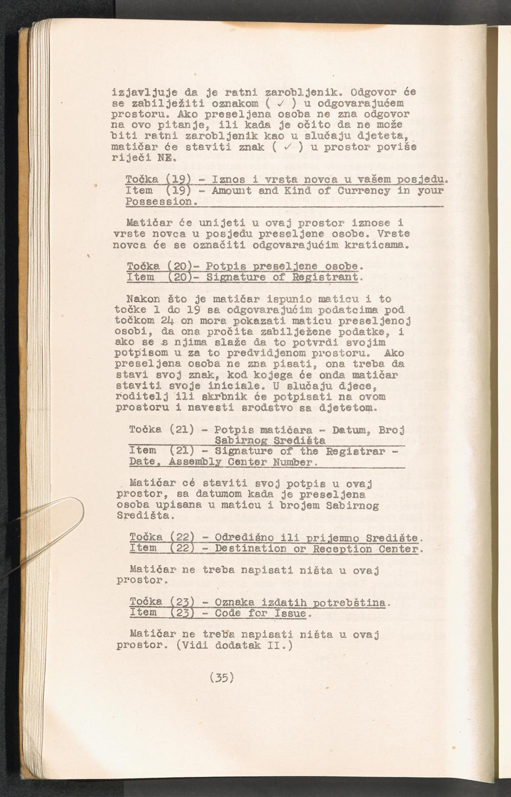Displaced Persons - Registration Instructions Chapter III (Croat)