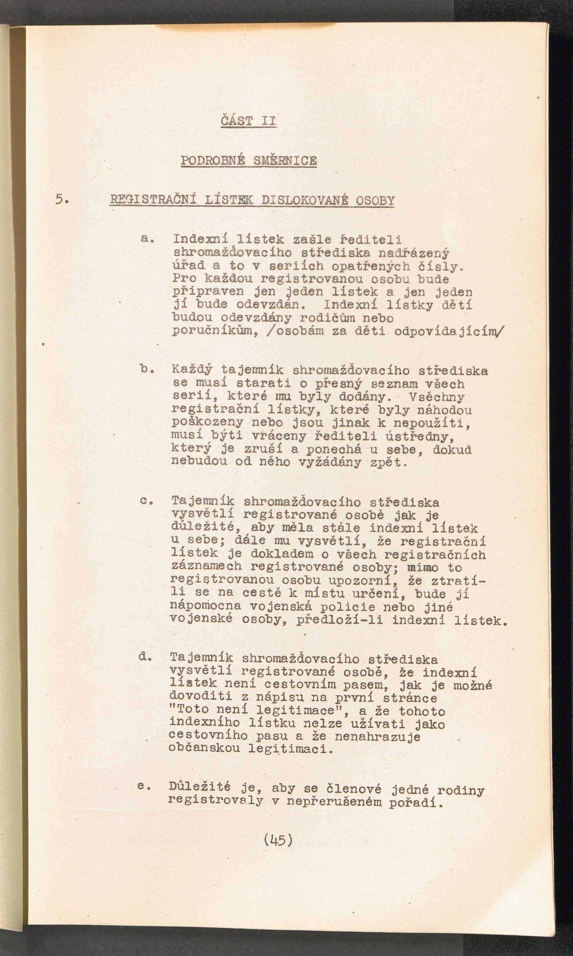 Displaced Persons - Registration Instructions Chapter IV (Czech)