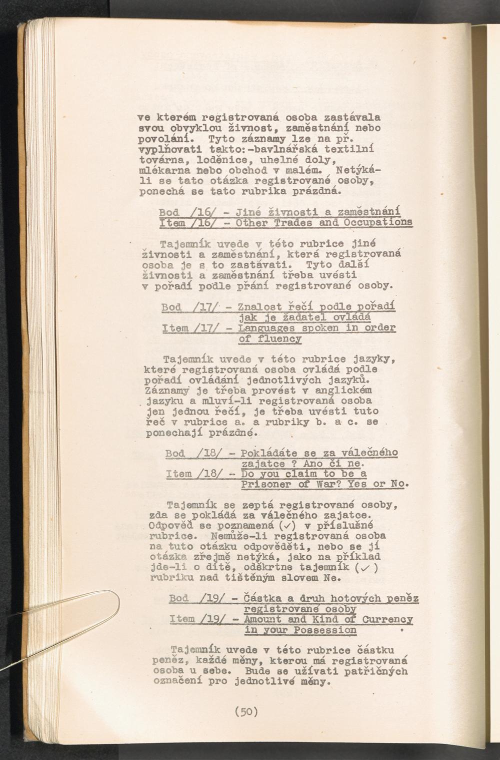 Displaced Persons - Registration Instructions Chapter IV (Czech)