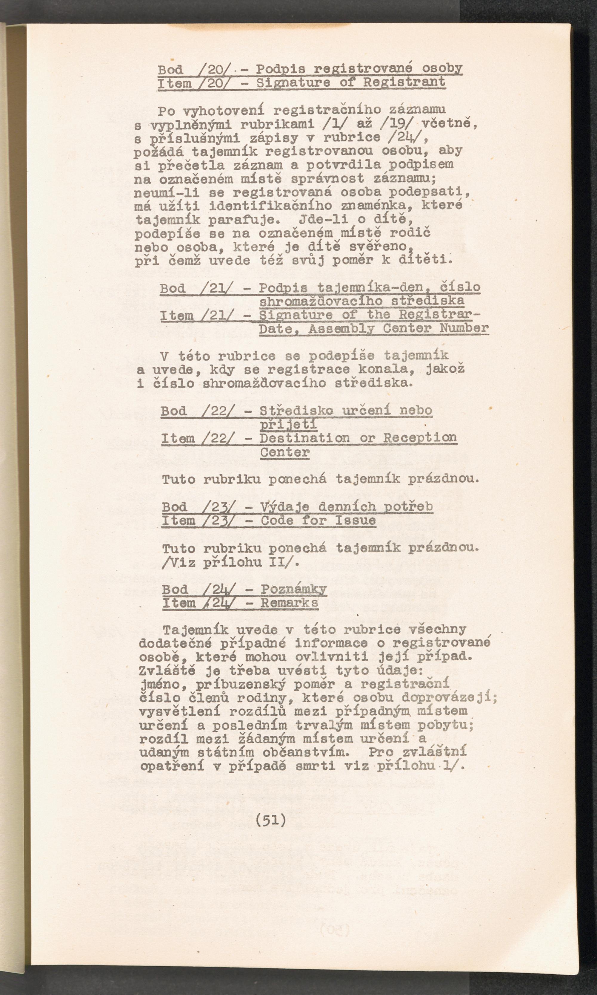 Displaced Persons - Registration Instructions Chapter IV (Czech)