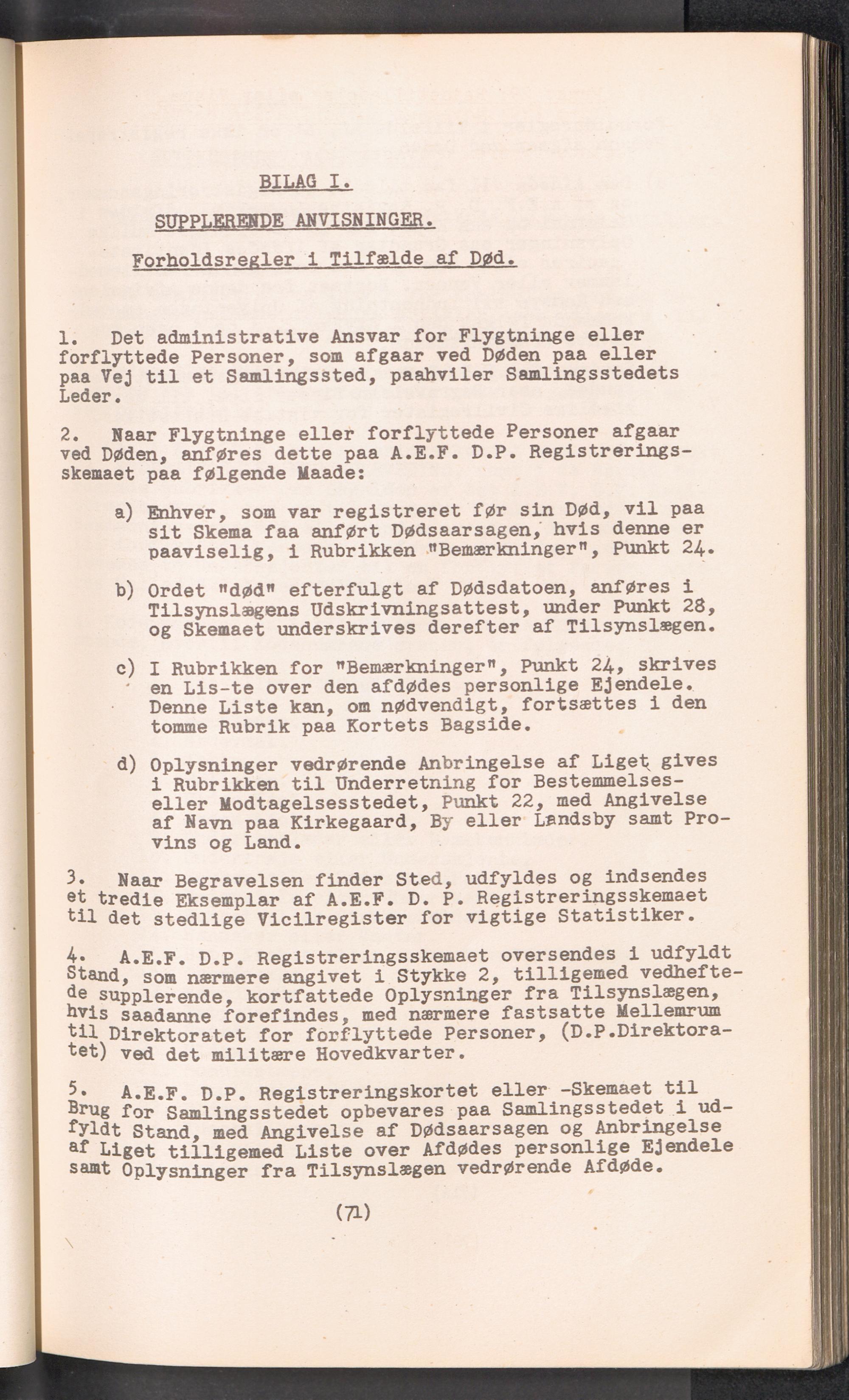 Displaced Persons - Registration Instructions Chaper V (Danish)