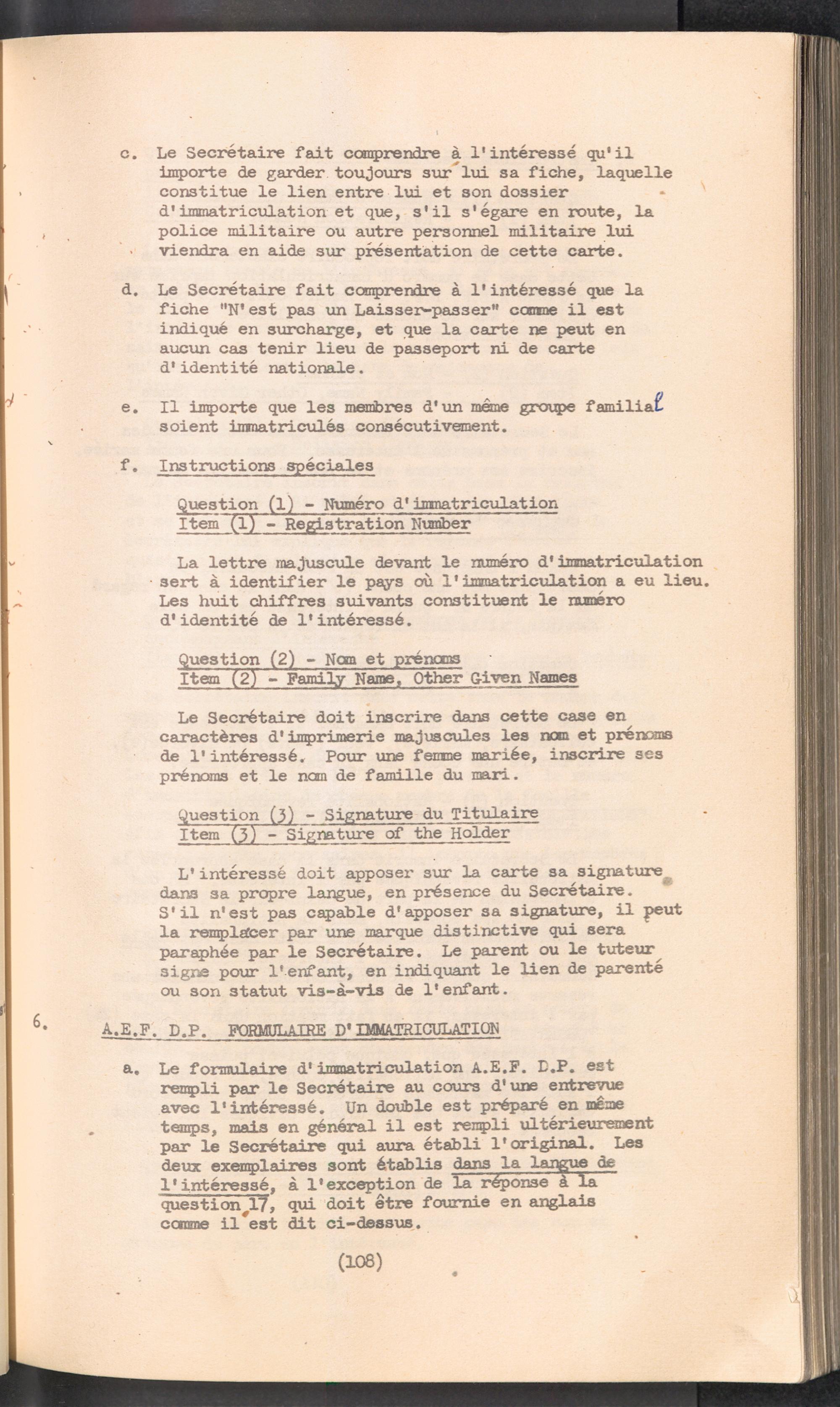 Displaced Persons - Registration Instructions Chapter VIII (French)