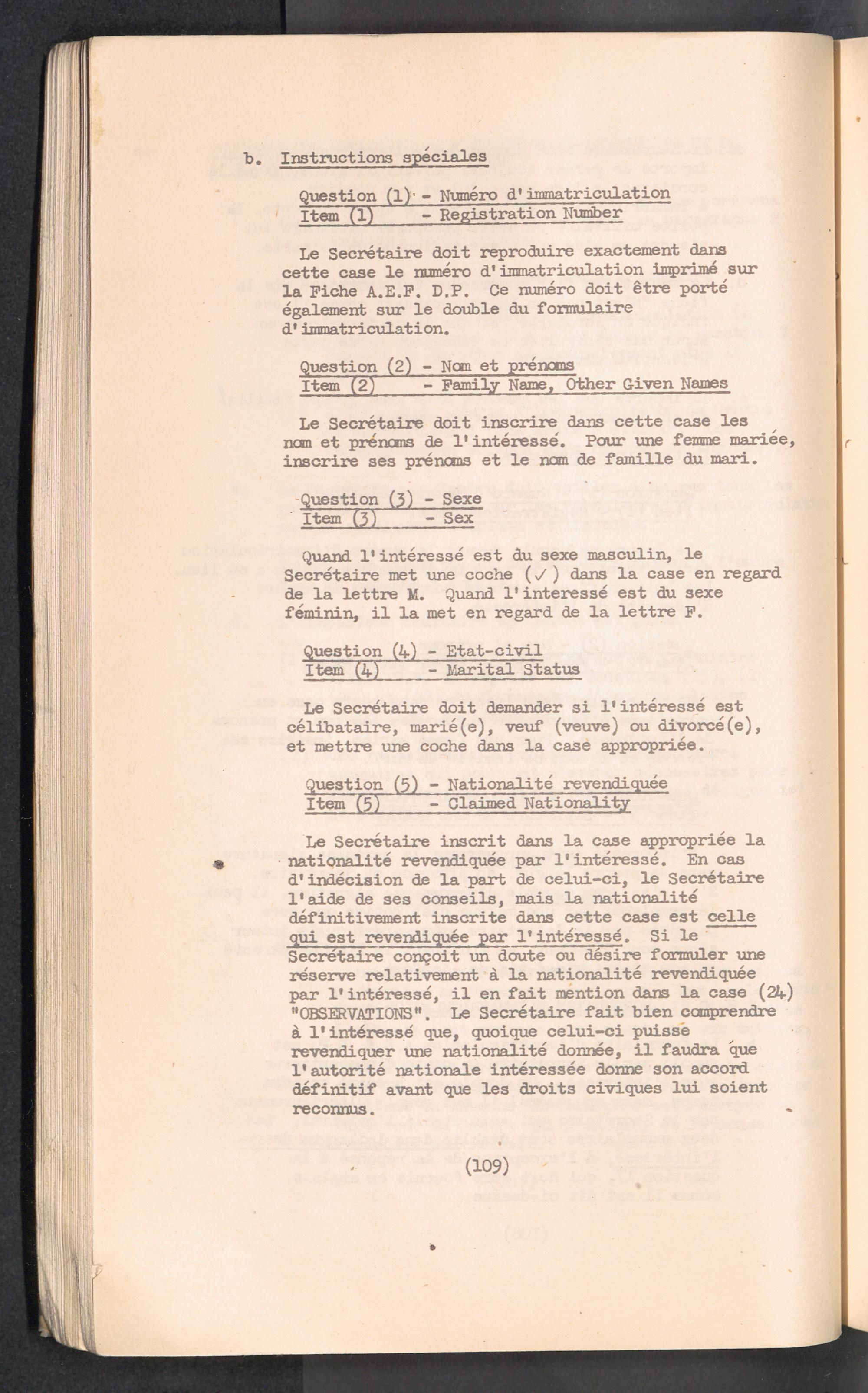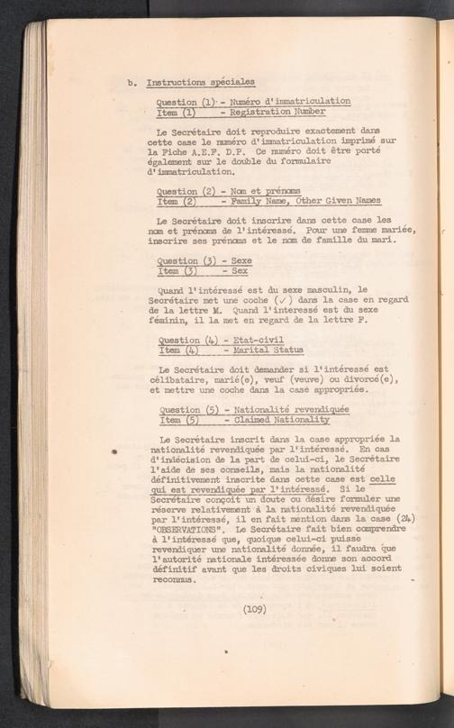 Displaced Persons - Registration Instructions Chapter VIII (French)