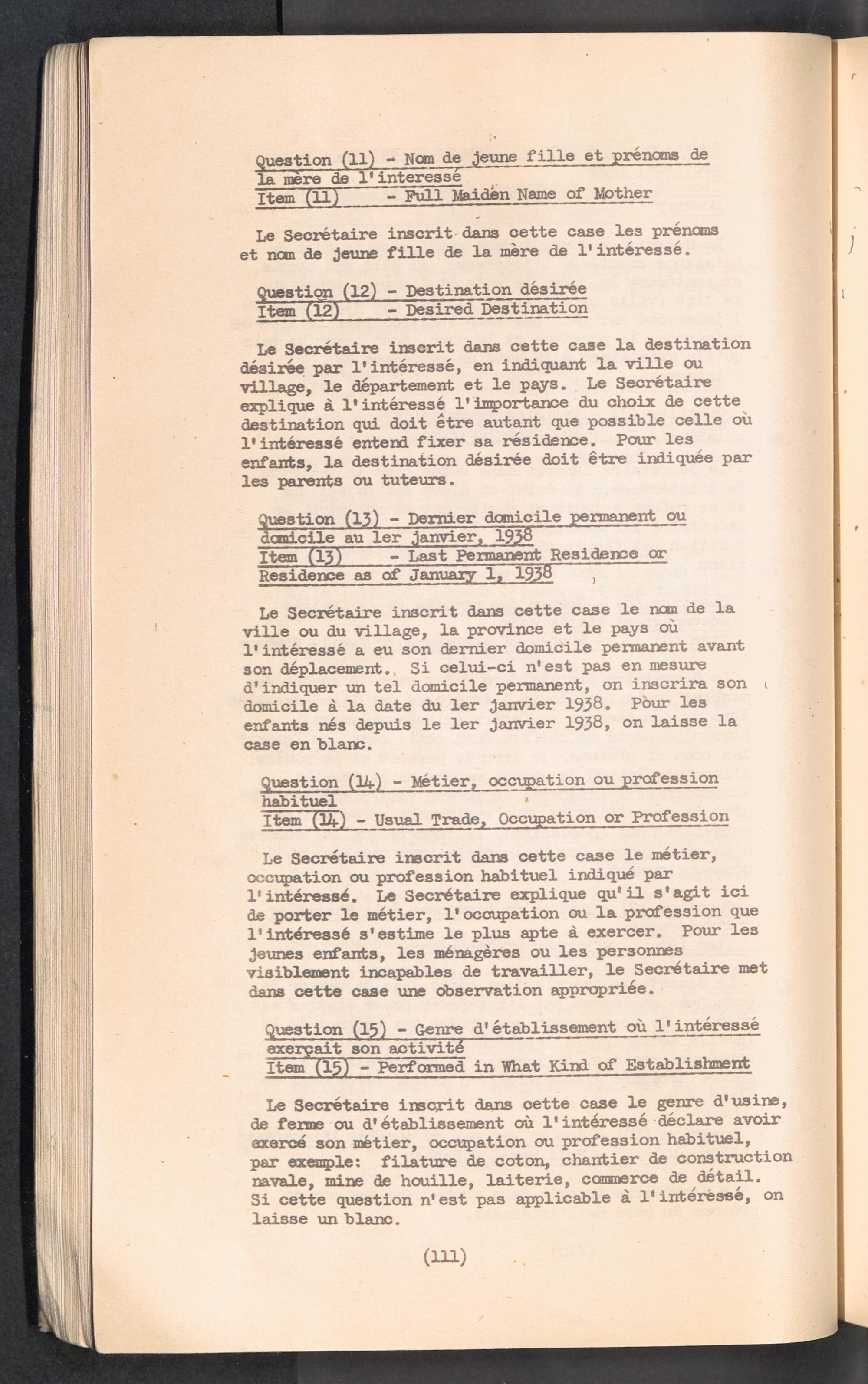 Displaced Persons - Registration Instructions Chapter VIII (French)