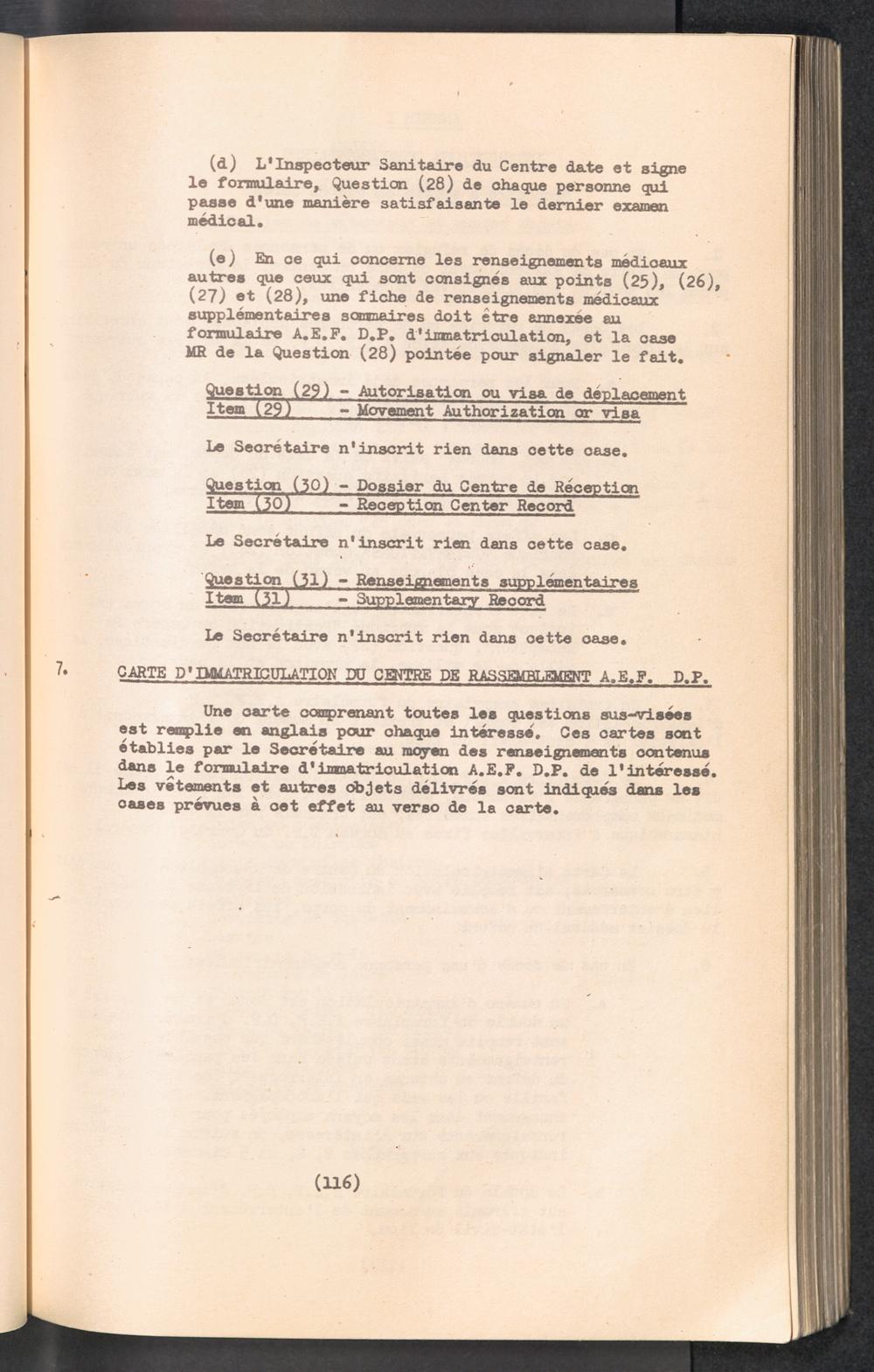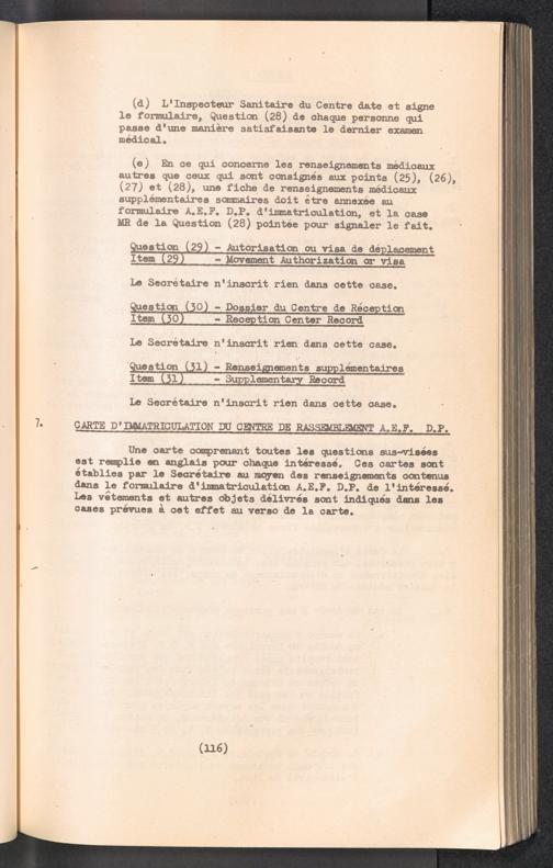 Displaced Persons - Registration Instructions Chapter VIII (French)