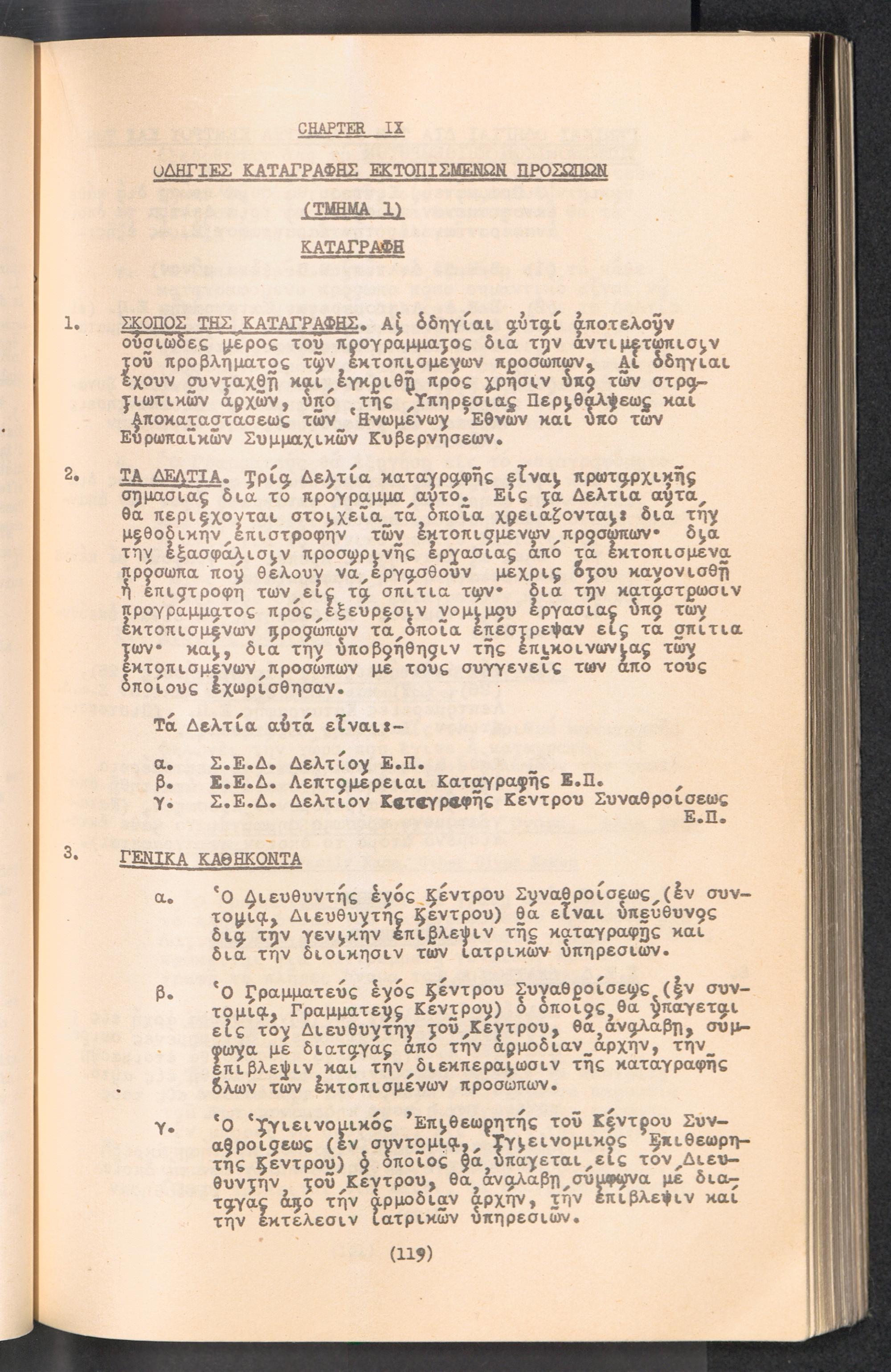 Displaced Persons - Registration Instructions Chapter IX (Greek)