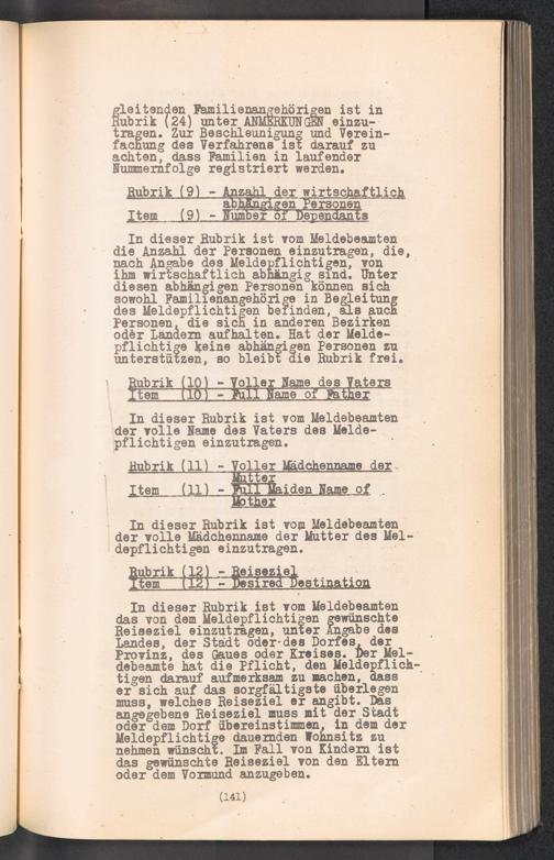 Displaced Persons - Registration Instructions Chapter X (German)