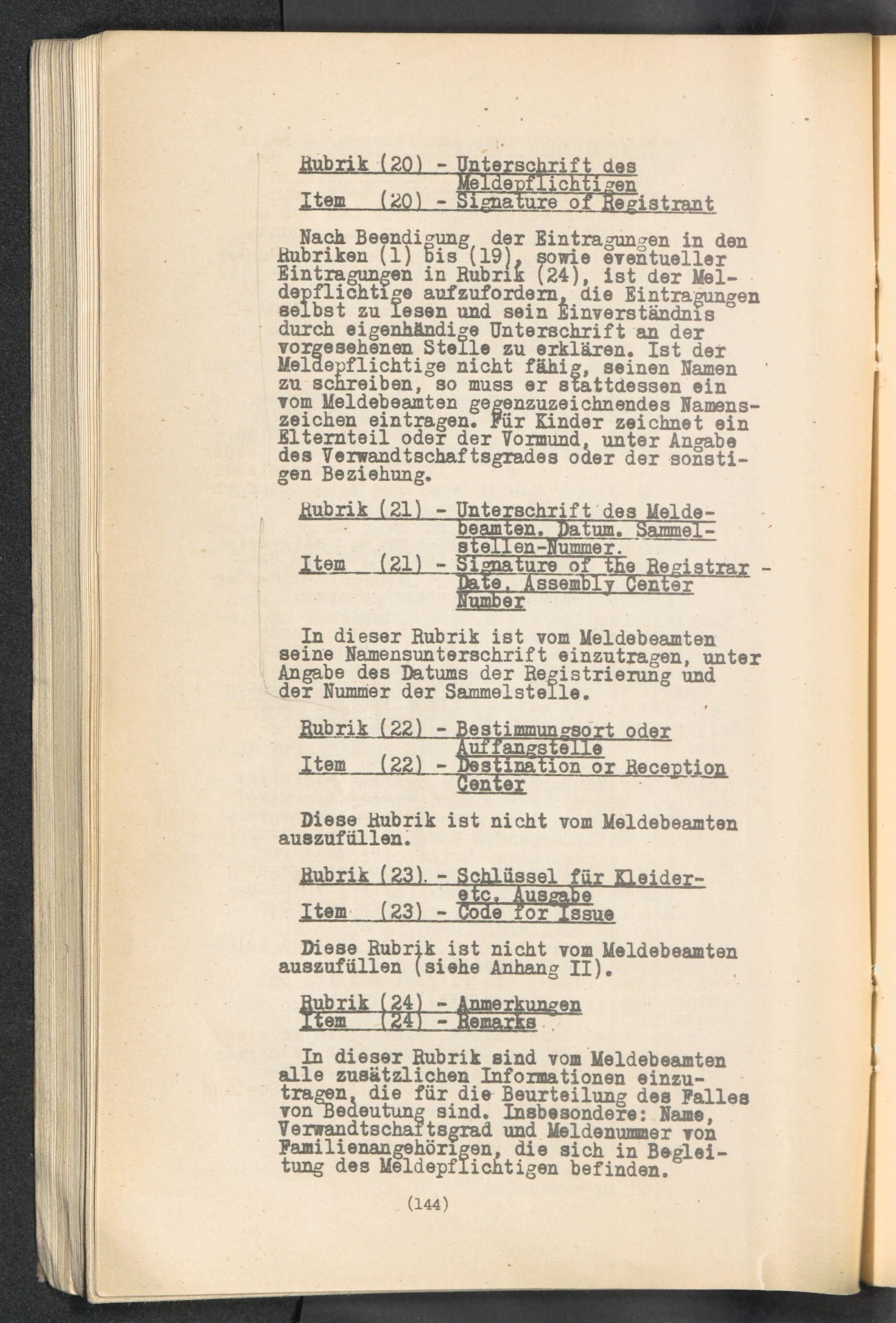 Displaced Persons - Registration Instructions Chapter X (German)