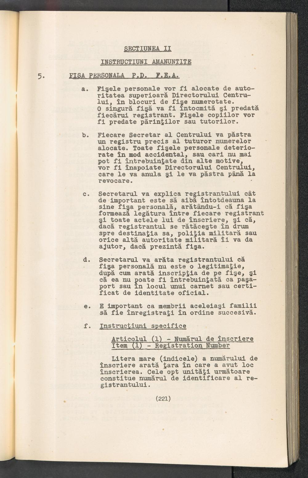 Displaced Persons - Registration Instructions Chapter XV (Rumanian)