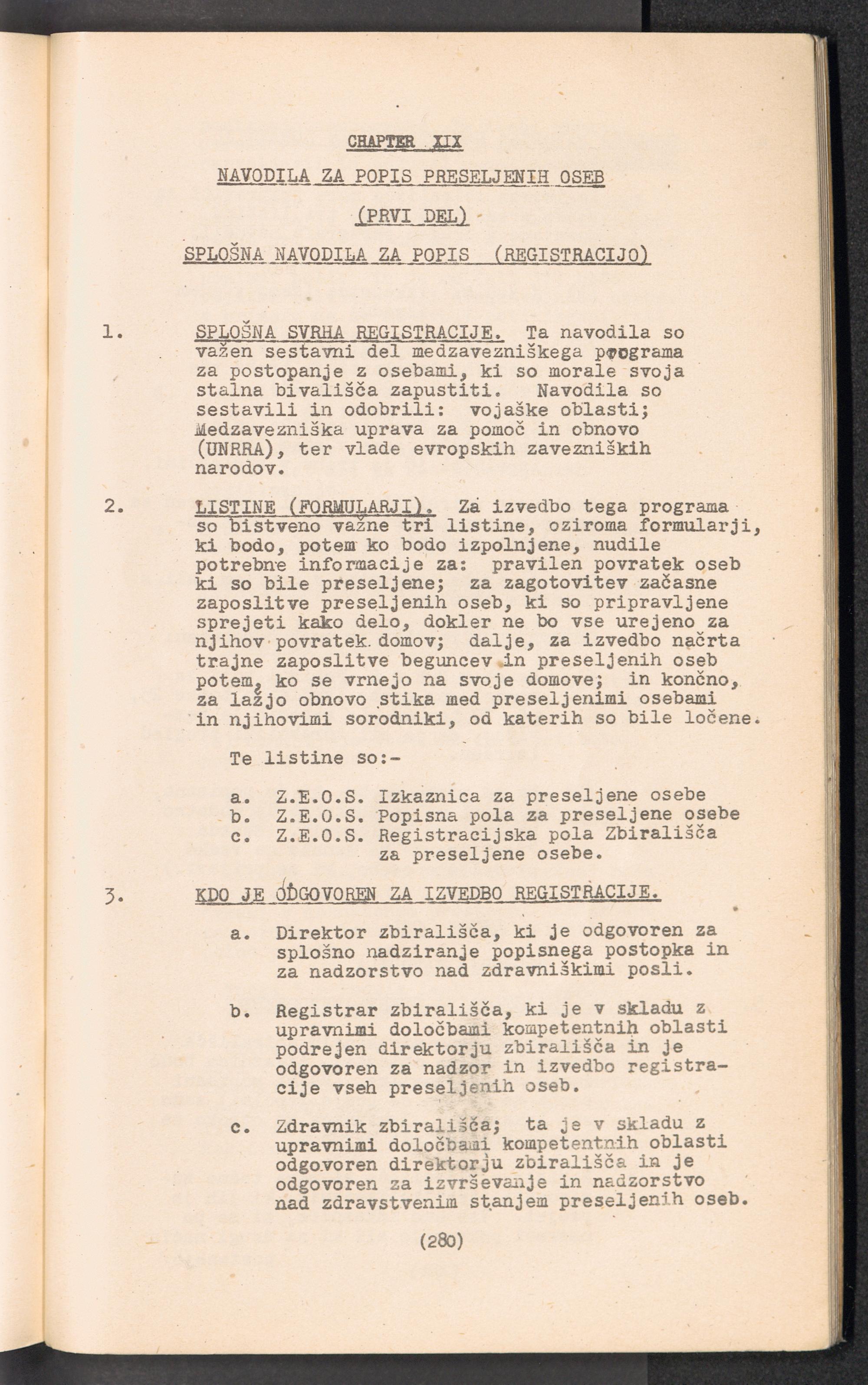 Displaced Persons - Registration Instructions Chapter XIX (Slovene)