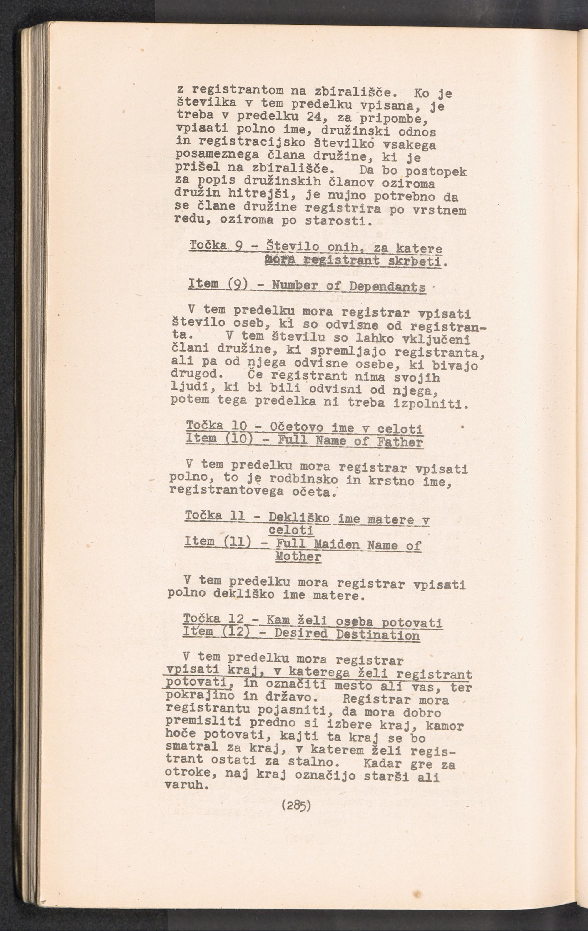 Displaced Persons - Registration Instructions Chapter XIX (Slovene)