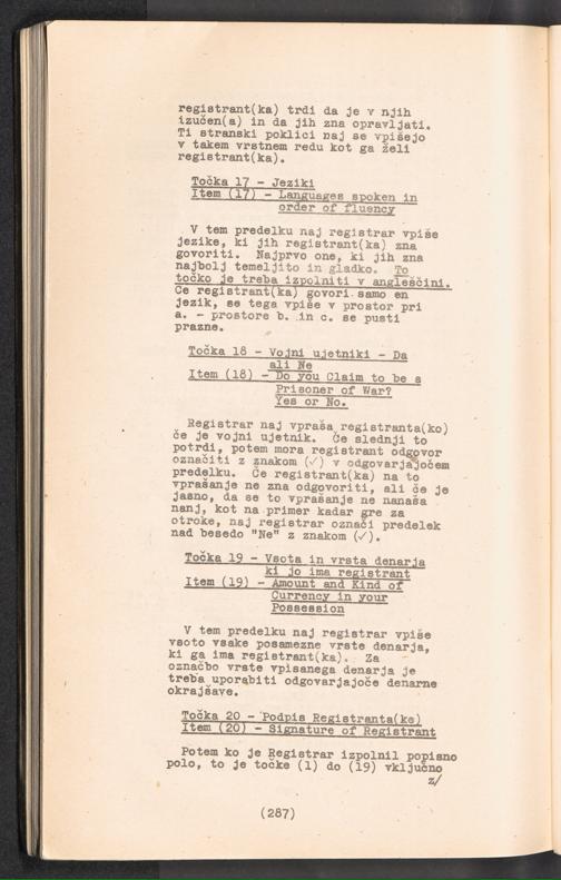 Displaced Persons - Registration Instructions Chapter XIX (Slovene)