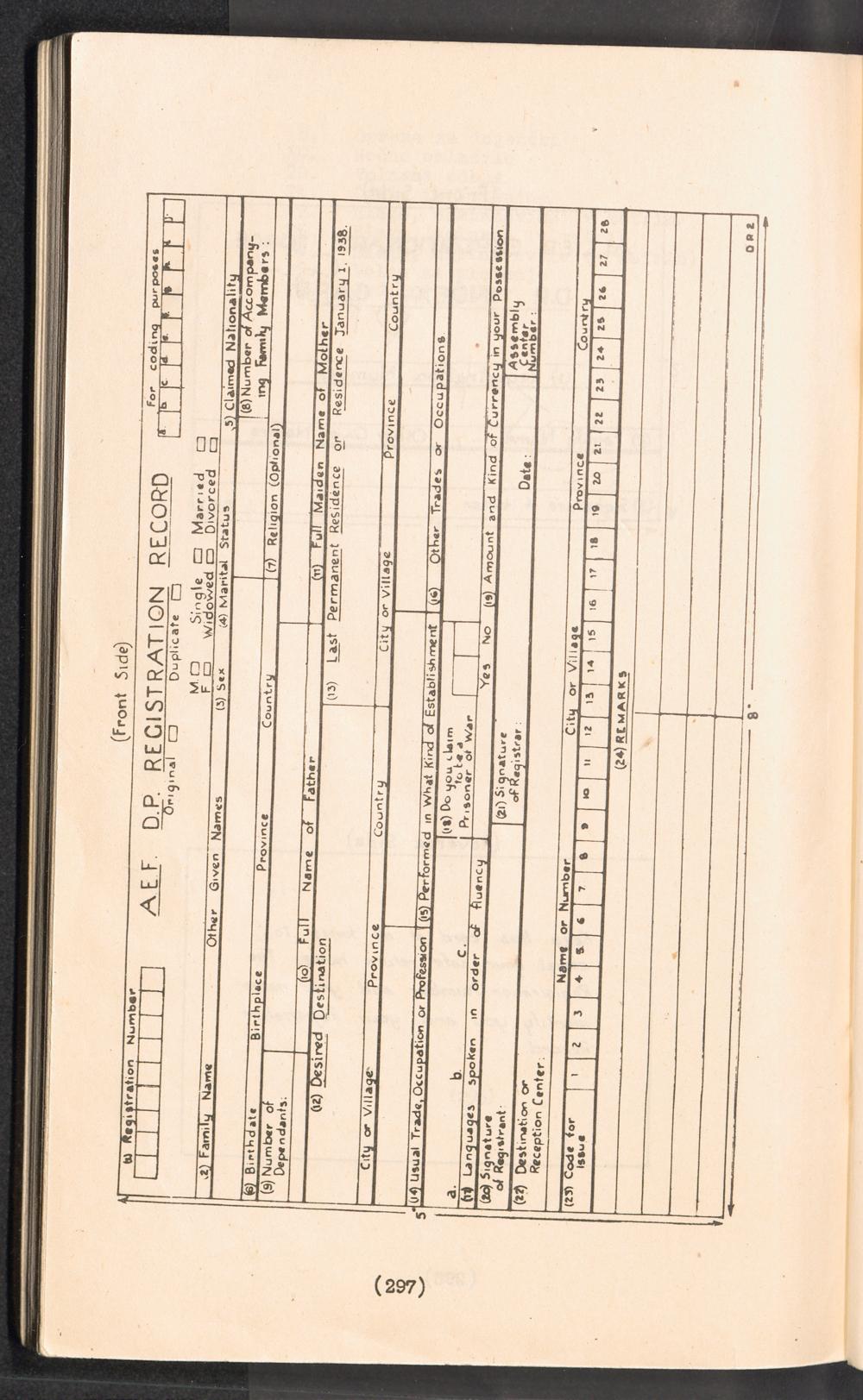 Displaced Persons - Registration Instructions Chapter XX: Specimen Registration Forms