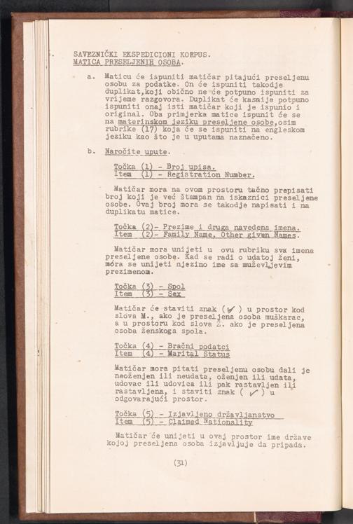 Displaced Persons - Registration Instructions Chapter III (Croat)