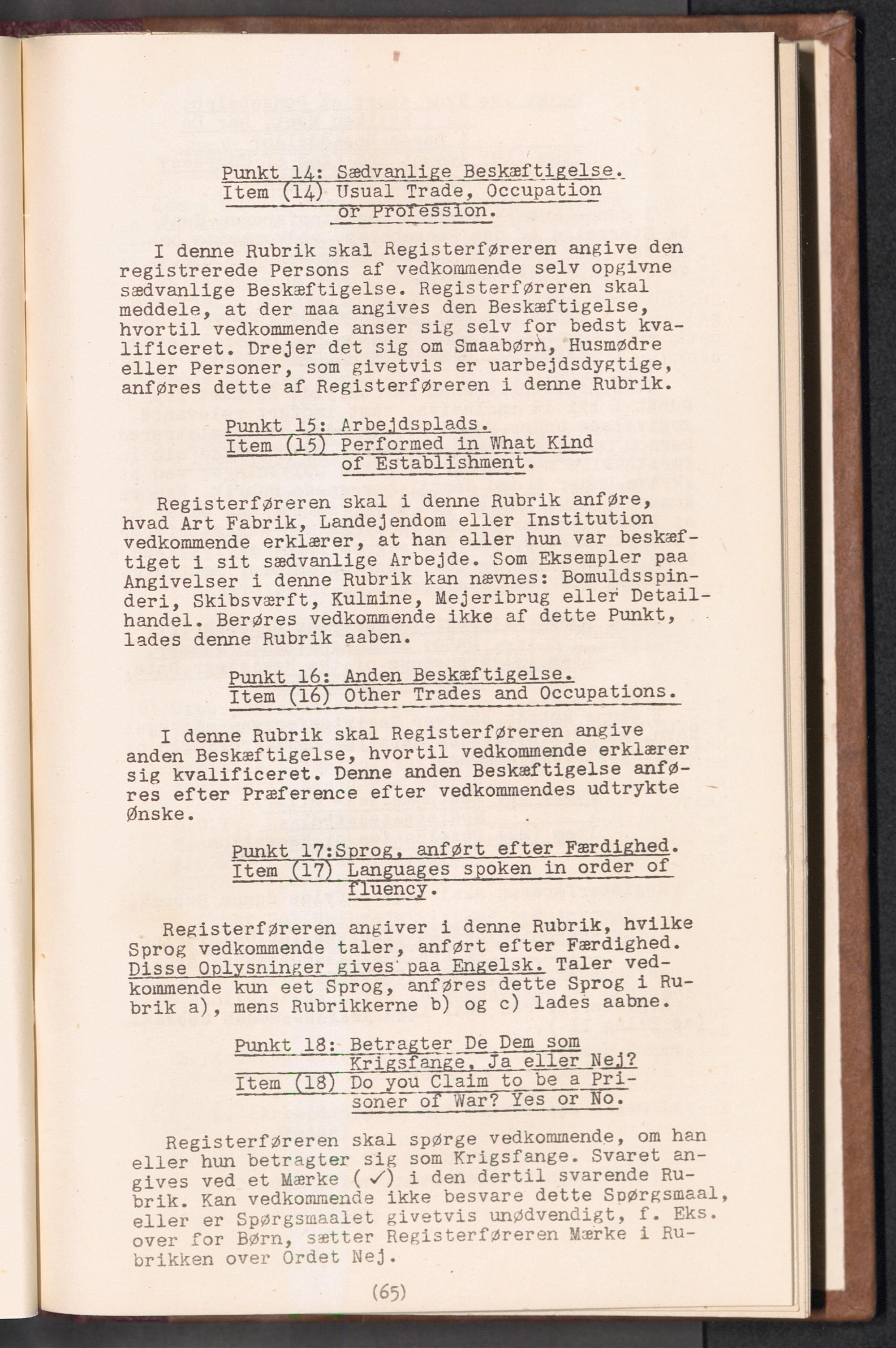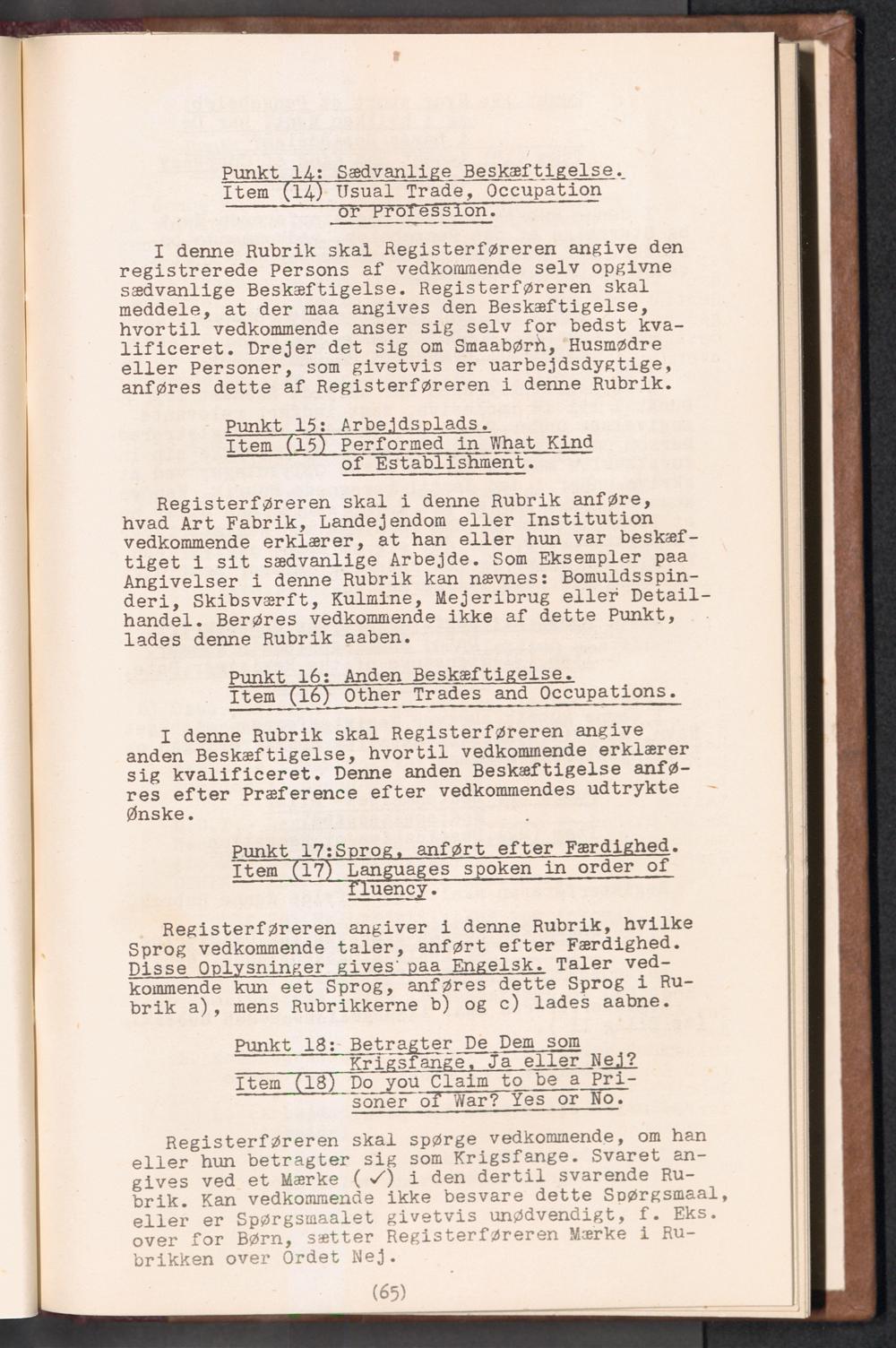 Displaced Persons - Registration Instructions Chapter V (Danish)